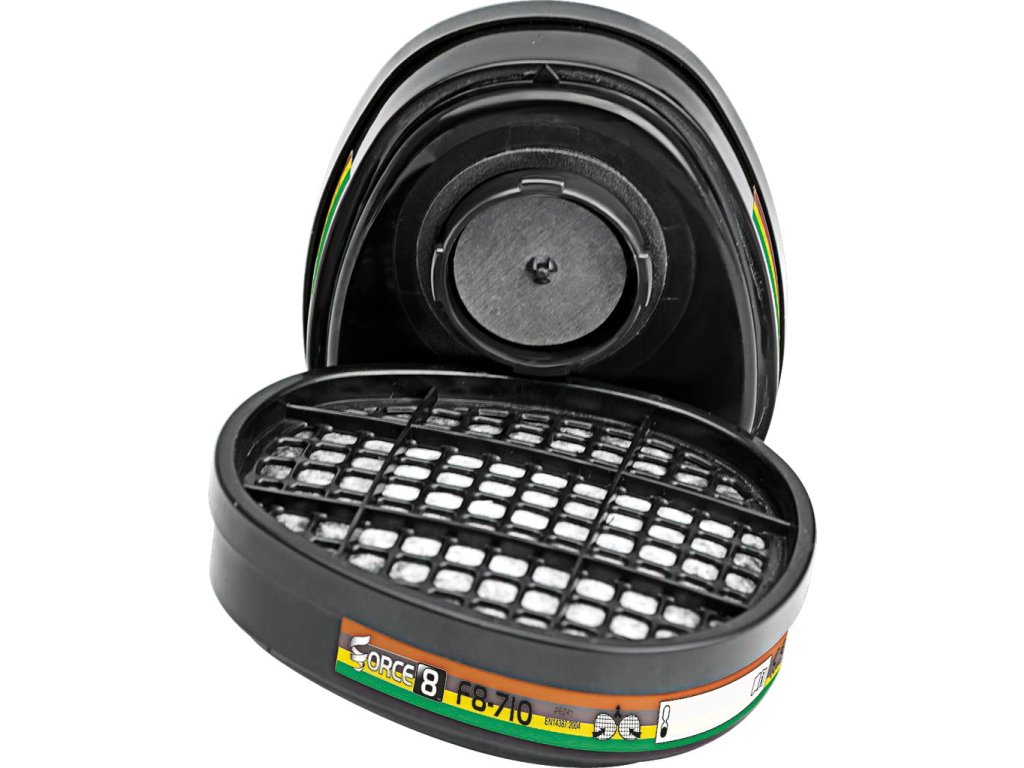 Náhradné filtre pre polomasku FORCE8™ - typ ABEK1. - Určené pre plyny, organické, anorganické a kyslé výpary a amoniak - Dostupné v taške s vešiakom - Malé balenie po 2 kusoch - Spĺňa požiadavky normy EN14387Dodatočné parametre