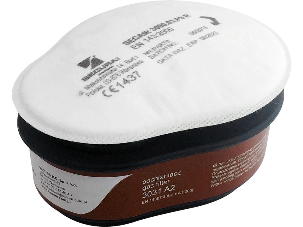 Sada filtrov 3071 A2P3 R - Sada obsahuje: dva plynové filtre 3031 A2 + dva filtre SECAIR 3000.03 P3 R - V kombinácii s polomaskou alebo celotvárovou maskou chráni dýchacie ústrojenstvo pred plynmi a parami organických a anorganických látok, kyslými parami a plynmi, amoniakom a jeho organickými derivátmi, ako aj zmesami vyššie uvedených látok. - Prípustná koncentrácia pár a plynov je 0,5 % objemu a koncentrácia rozptýlenej aerosólovej fázy nemôže prekročiť 20 x OEL v kombinácii s polomaskou a 1000 x OEL v kombinácii s celotvárovou maskou. - Spĺňa požiadavky normy: EN14387Dodatočné parametre