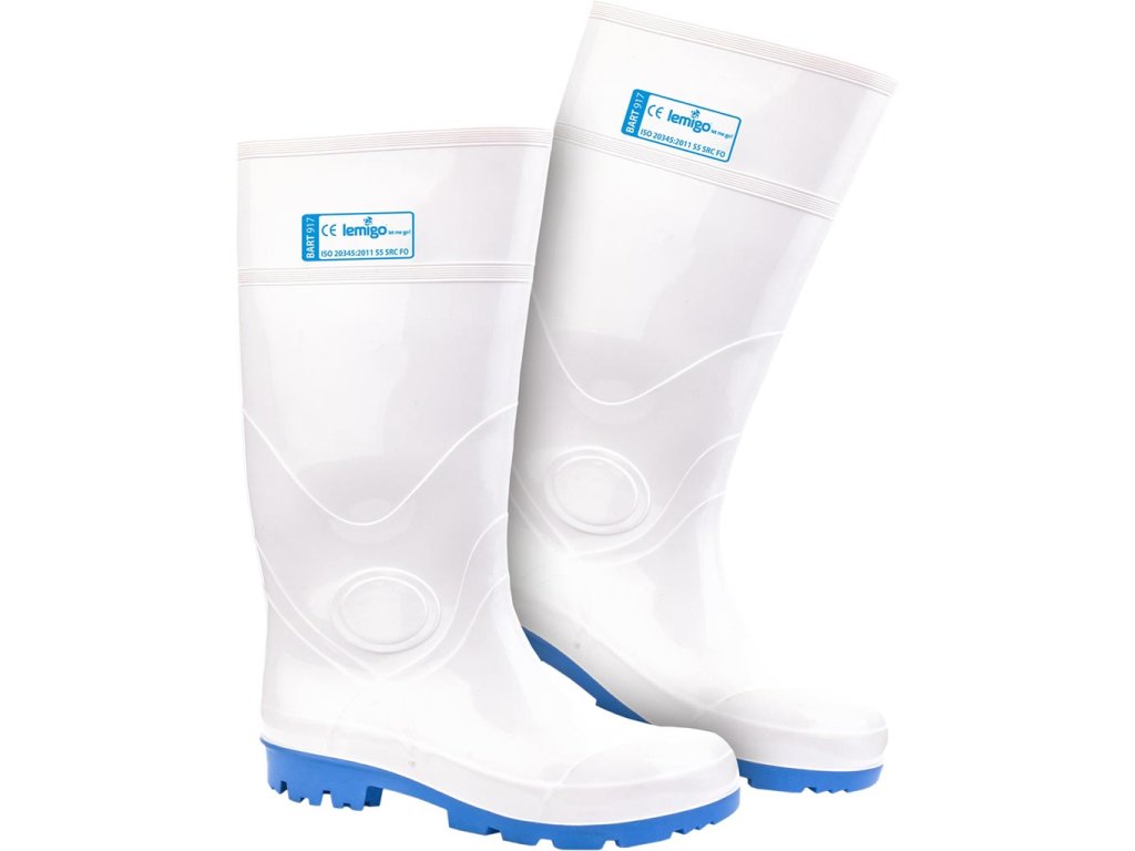 Bezpečnostná obuv BART. - Vyrobené z termoplastického PVC - Odolné voči kyselinám, chloridu sodnému, rastlinným olejom, motorovej nafte, vápennej vode a etanolu, medzi inými - SRC protišmyková podrážka - Absorpcia nárazov pod pätou - Protišmykové na keramických povrchoch potiahnutých laurylsulfátom sodným - Vhodné na použitie okrem iného v potravinárskom a gastronomickom priemysle, poľnohospodárstve, rybárstve a poľovníctve - Ideálne pre chemický a spracovateľský priemysel - Zvršok odolný voči kyselinám (10% H2SO4), lúhom (5% NaOH), chloridu sodnému (10% NaCl), vápennej látke, etanolu a rastlinným olejom, s dodatočnou podrážkou odolnou voči kyselinám (30% H2SO4) a zásadám (20% NaOH) - Kategória S5 SRC - Spĺňa požiadavky EN20345 a EN20344Dodatočné parametre