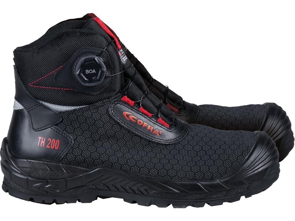 Zateplená, nepremokavá bezpečnostná obuv ODINO. - Vyrobené z tkaniny TECHSHELL so zvýšenou odolnosťou proti oderu a roztrhnutiu - Členkové čižmy - Upevnené systémom BOA - Izolované plstenou tkaninou (100% polyester) a materiálom THINSULATE™ s hmotnosťou 200 g/m² - Protišmyková, olejuvzdorná a antistatická podošva vyrobená z nitrilovej gumy (NBR) - Podrážka je odolná voči kontaktu s horúcimi povrchmi - Absorpcia nárazov pod pätou - Nekovová vložka proti prepichnutiu s tlakom 1100 N - tužinka zo sklenených vlákien odolná voči nárazom 200 J a tlakovým silám do 15 kN - Izolácia proti chladu na podrážke - Kategória S7S CI SC HRO FO SRDodatočné parametre