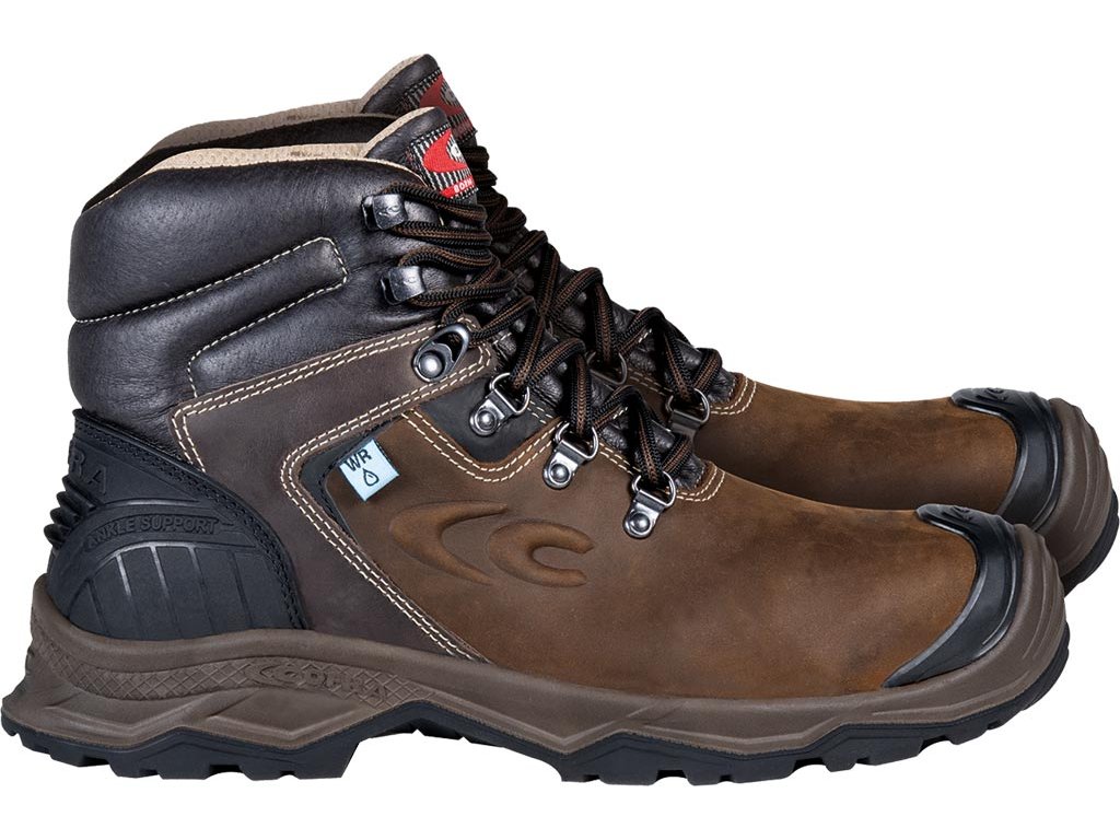 Nepremokavá bezpečnostná obuv PIRENEI. - Vyrobené z vodeodolnej nubukovej kože - Kotníkové čižmy - Zapínanie na šnurovanie - Protišmyková, olejuvzdorná a antistatická podošva vyrobená z polyuretánu a nitrilovej gumy (NBR) - Podrážka odolná voči kontaktu s horúcimi povrchmi - Podpätka absorbujúca nárazy - Nekovová vložka proti prepichnutiu s tlakom 1100 N - tužinka zo sklenených vlákien odolná voči nárazom 200 J a tlakovým silám do 15 kN - Izolácia proti teplu a chladu - Kategória S7S HI CI HRO LG SC FO SRDodatočné parametre