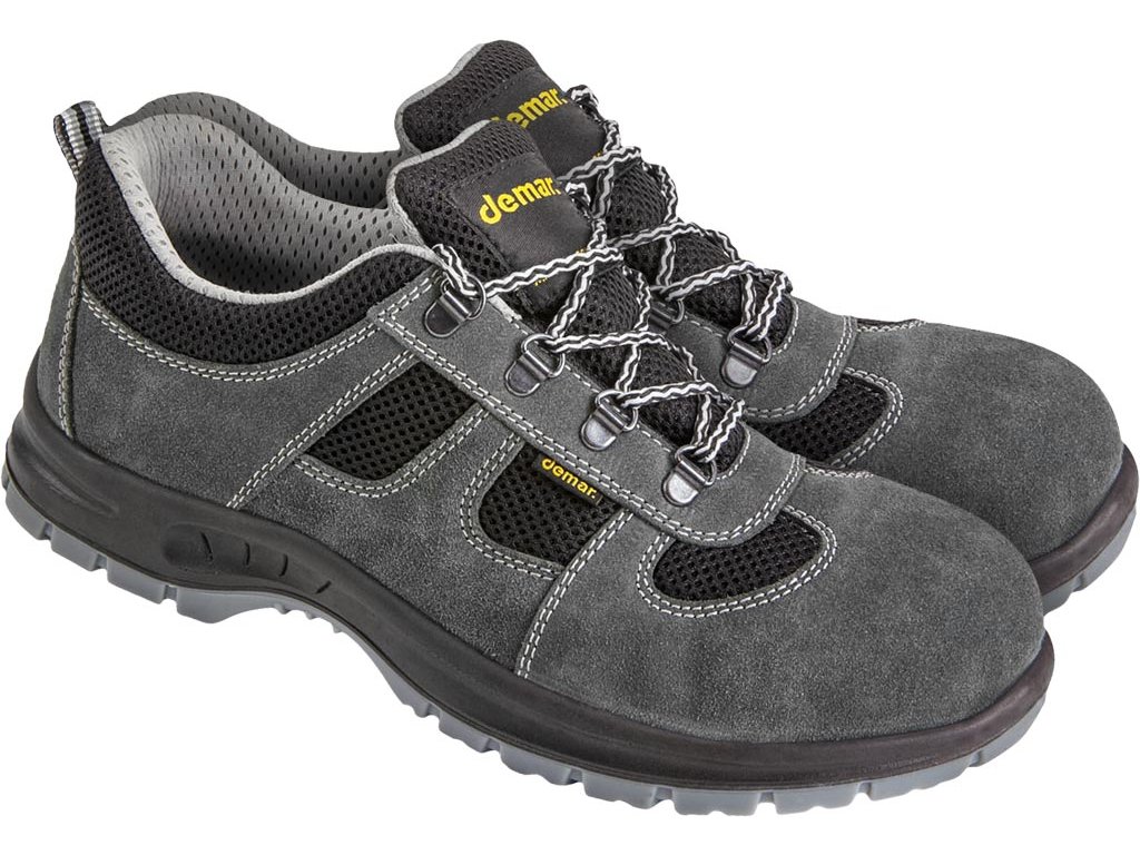 Zamatová bezpečnostná obuv PROTON. - Veľmi priedušné - Zvršok vyrobený zo zamatovej kože a paropriepustnej látky - Odolný voči olejom, benzínu a iným organickým rozpúšťadlám - Kompozitná špička odolná voči nárazom 200 J a tlakovým silám až 15 kN - Obsahuje vymeniteľnú, anatomicky tvarovanú podšívku a ochranný remienok, ktorý eliminuje tlak z okraja špičky - Podrážka poskytuje vynikajúce tlmenie nárazov v oblasti päty - Antistatické vlastnosti - Kategória S1 SRC FO - Spĺňa požiadavky EN20345 a EN20344Dodatočné parametre
