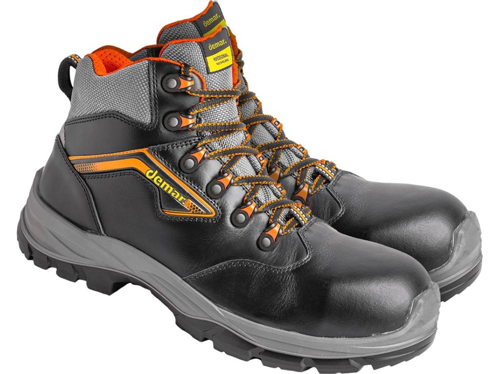 Bezpečnostná obuv SOLO S3. - Kotníkové čižmy - Antistatické vlastnosti - Zvršok je vyrobený z vodeodolnej kože - Odolný voči olejom, benzínu a iným organickým rozpúšťadlám - Kompozitná špička odolná voči nárazom 200 J a tlakovým silám až 15 kN - Vložka proti prepichnutiu s tlakom 1100 N - Podrážka poskytuje vynikajúce tlmenie nárazov v päte - Kategória S3 SRC FO - Spĺňa požiadavky EN20345 a EN20344Dodatočné parametre