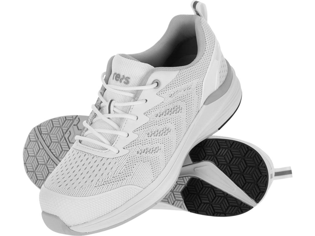 Biela športová obuv ATTIC REIS pre mužov. - Vyrobená z pletenej textílie v kombinácii s TPU - Nízka obuv, po členky - Šnurovanie - Protišmyková, olejuvzdorná, antistatická podrážka z EVA a gumy - Tlmenie nárazov pod pätou - Nekovová kevlarová vložka chráni chodidlo pred prepichnutím tlakom 1100 N - Kompozitná špička odolná voči nárazom 200 J a tlakovým silám až 15 kN - Reflexné prvky - Kategória S1PS FO SR