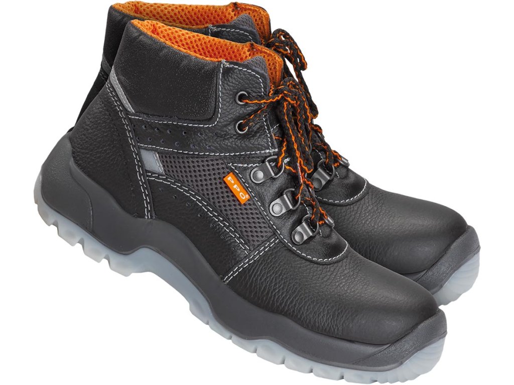 Pánska členková pracovná obuv S1 PPO PP s oceľovou špičkou. - Technológia priameho uchytenia podrážky k zvršku, dvojstupňové vstrekovanie polyuretánu a termoplastického polyuretánu - Zvršok vyrobený z celozrnnej hovädzej kože s vložkami z dištančnej tkaniny a reflexnými prvkami - Dvojvrstvová podrážka PU/TPU - Vybavené vnútornou kovovou špičkou, prispôsobenou prirodzenému tvaru chodidla, účinne chránia chodidlo pred nárazmi s energiou 200 J - Vybavené odnímateľnou hygroskopickou podšívkou - Odolné voči teplotám do 120 °C pri krátkodobom kontakte - Ľahké, odolné a pevné, účinne vyrovnávajú nerovné povrchy a sú odolné voči oderu, porezaniu a praskaniu - Obzvlášť sa odporúčajú na použitie v lete a v miestnostiach s vysokými teplotami - Vysokokvalitné materiály robia obuv ľahkou a pohodlnou - Kategória S1 FO - Spĺňa požiadavky noriem EN20345 a EN20344