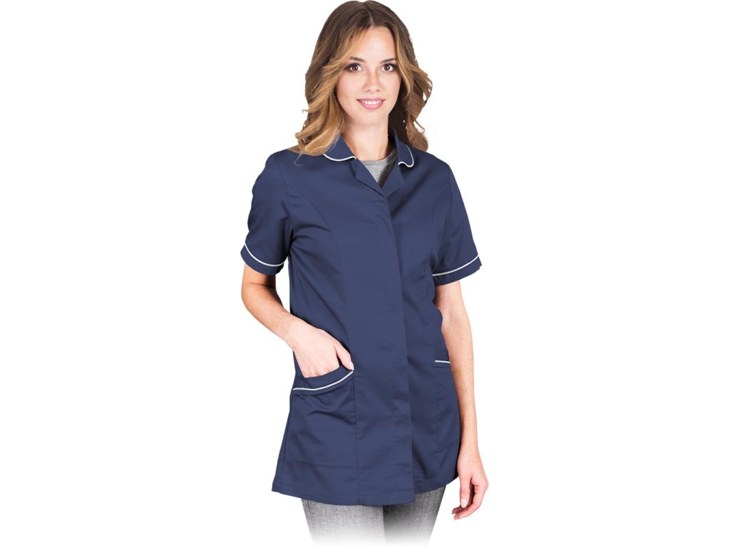 Dámska ochranná zástera s krátkym rukávom. - 50% polyester, 50% bavlna - hmotnosť 195 g/m² - Zapína sa na štyri gombíky, navyše prekryté légou - Dve spodné vrecká - Zakončené golierom pri krku - Dva rozparky v spodnej časti chrbta - Sieťovaná zadná časť poskytuje lepšiu ventiláciu - Testované na škodlivé látky podľa OEKO-TEX® Standard 100 - Ideálne pre upratovacie služby, ako aj pre použitie v obchodoch a kvetinárstvachDodatočné parametre