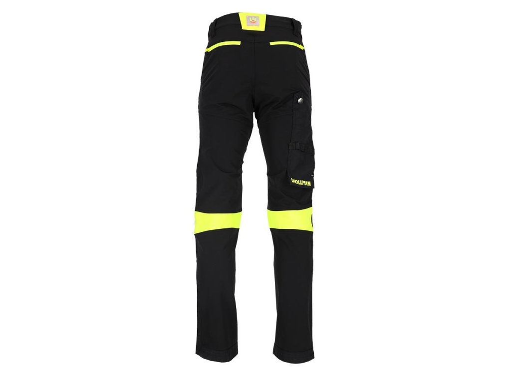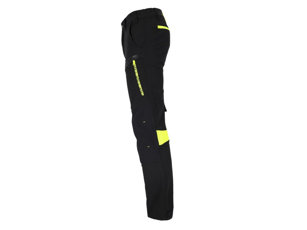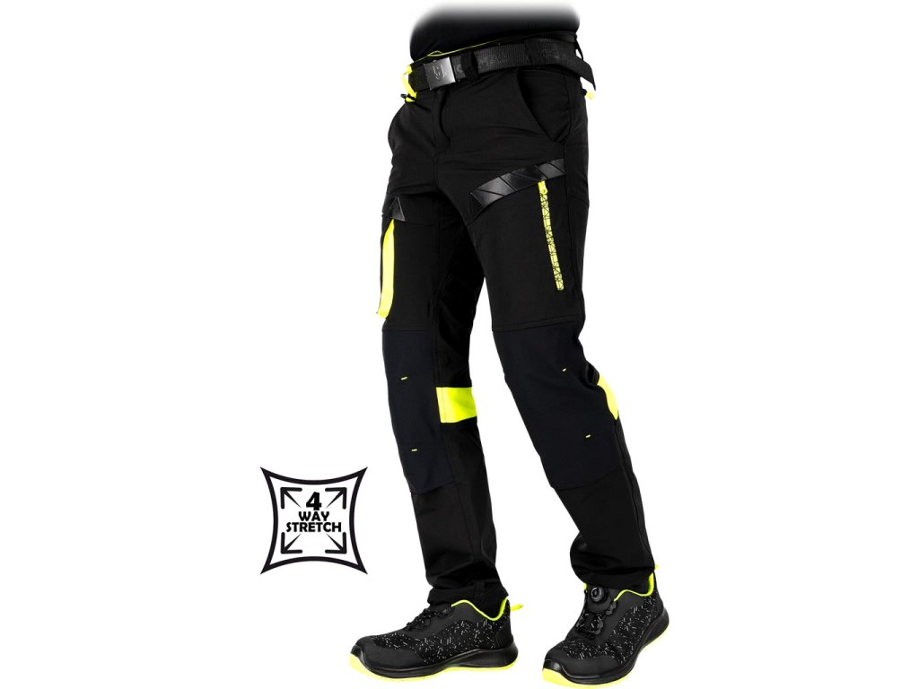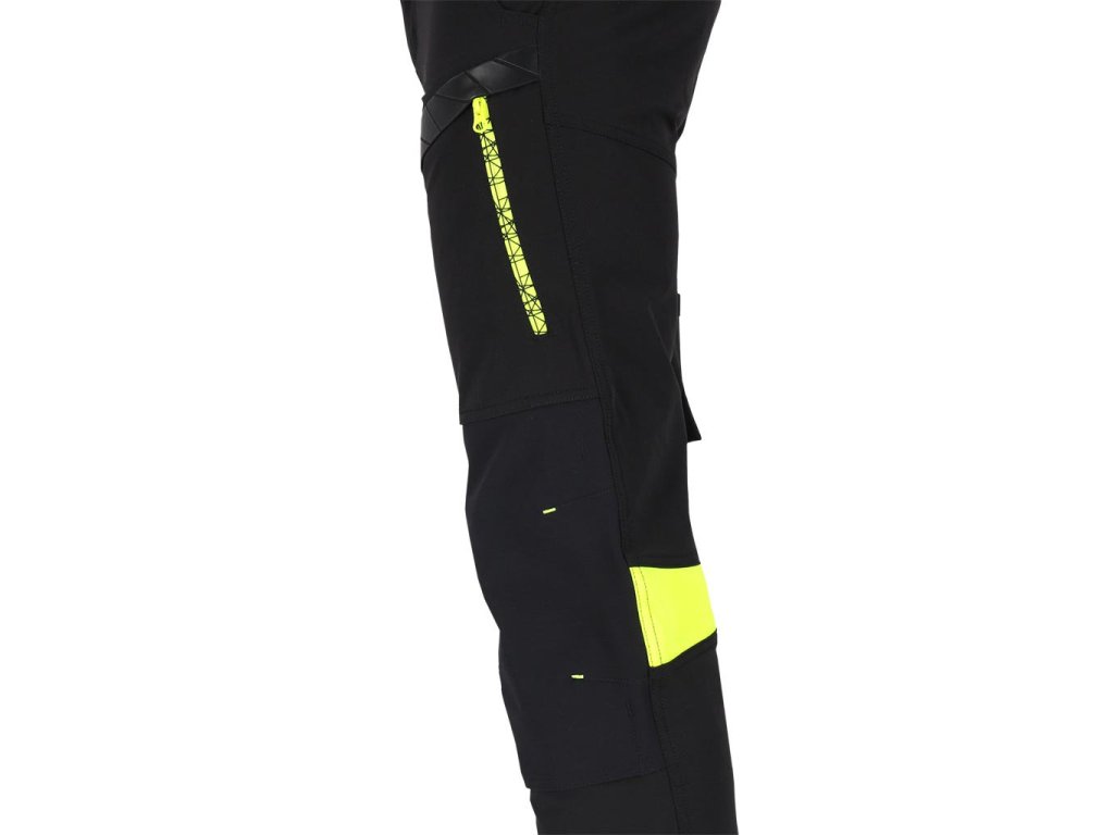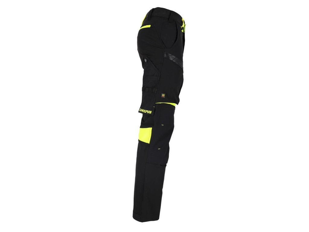 Pánske elastické a strečové pracovné nohavice do pása L.HOLLMAN. - hlavný materiál: 4-cestná strečová tkanina 90% nylon, 10% elastan, 260 g/m2 - kontrastné vložky: 80% polyester, 20% bavlnený satén, 280 g/m2 - vložky na kolenách: rip-stop tkanina 90% nylon, 10% elastan, 260 g/m2 - ďalšie vložky na spodnej časti nohavíc a pozdĺžnom vrecku: 100% nylon Oxford tkanina, 210 g/m2 - 4-cestná streč - materiál, ktorý sa naťahuje všetkými smermi - rip-stop tkanina - chráni pred roztrhnutím pri zachytení o vyčnievajúci predmet - zapínanie na gombík a zips - dve bočné vrecká a dve zadné vrecká so zipsami - vrecká na nohaviciach, z toho jedno so zipsom a jedno dvojité pozdĺžne s pútkami umožňujúcimi pripevnenie ďalšieho príslušenstva - vrecká na chrániče kolien vkladané zospodu so zapínaním na suchý zips - profilované kolená - elastický pás po stranách pre lepšie prispôsobenie - hrot na pripevnenie kľúčov - strih: SLIM