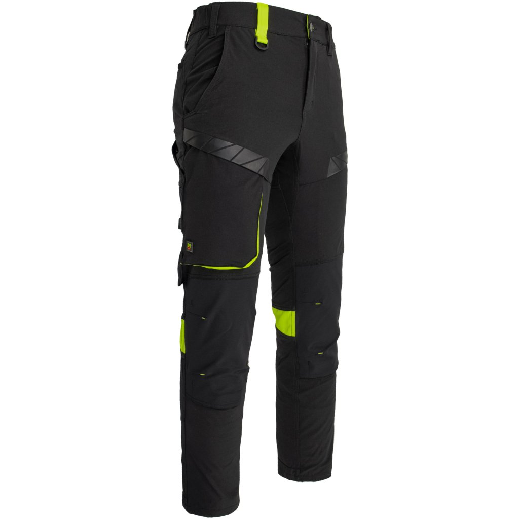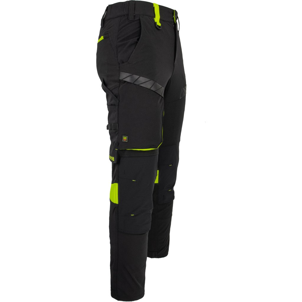 Pánske elastické a strečové pracovné nohavice do pása L.HOLLMAN. - hlavný materiál: 4-cestná strečová tkanina 90% nylon, 10% elastan, 260 g/m2 - kontrastné vložky: 80% polyester, 20% bavlnený satén, 280 g/m2 - vložky na kolenách: rip-stop tkanina 90% nylon, 10% elastan, 260 g/m2 - ďalšie vložky na spodnej časti nohavíc a pozdĺžnom vrecku: 100% nylon Oxford tkanina, 210 g/m2 - 4-cestná streč - materiál, ktorý sa naťahuje všetkými smermi - rip-stop tkanina - chráni pred roztrhnutím pri zachytení o vyčnievajúci predmet - zapínanie na gombík a zips - dve bočné vrecká a dve zadné vrecká so zipsami - vrecká na nohaviciach, z toho jedno so zipsom a jedno dvojité pozdĺžne s pútkami umožňujúcimi pripevnenie ďalšieho príslušenstva - vrecká na chrániče kolien vkladané zospodu so zapínaním na suchý zips - profilované kolená - elastický pás po stranách pre lepšie prispôsobenie - hrot na pripevnenie kľúčov - strih: SLIM