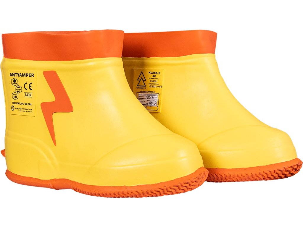 Elektricky izolačné 20 KV ANTIAMPÉROVÉ topánky triedy 2. - Vyrobené z gumy - Vyrába sa ručným balením a vulkanizáciou v kvetináči - Určené pre prácu s elektrickými zariadeniami do 17 kV striedavého napätia (AC) ako doplnkové ochranné prostriedky na ochranu nositeľa pred prechodom nebezpečného šokového prúdu cez ľudské telo a chodidlá - Znižuje riziko úrazu elektrickým prúdom - Navrhnuté na nosenie cez inú vnútornú obuv (bezpečnostnú alebo pracovnú) - Vnútorná dĺžka: 340 mm - Výška topánky: 230 mm - Vyhovuje normám PN-EN ISO 20347 a PN-EN 50321-1Dodatočné parametre