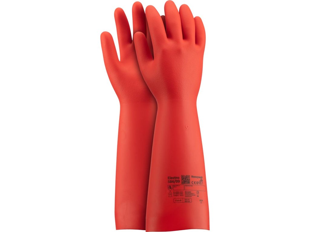 Elektroizolačné rukavice KCL ELECTRO 584. - vyrobené z nitrilového kaučuku - dĺžka rukavíc: 36 cm - trieda napätia: 0 - maximálne prevádzkové napätie (AC/DC): 1000 V/1500 V - trieda odolnosti voči elektrickému oblúku: APC 2 - neobsahujú silikón, takže sa nepoškodí lak auta - sú pohodlné, flexibilné a majú dobrú obratnosť - textúrovaná vonkajšia časť ruky a prstov, ktorá zabraňuje šmýkaniu držaných predmetov a uľahčuje úchop - chránia pred tepelnými rizikami spôsobenými elektrickým oblúkom, pomáhajú predchádzať popáleninám, pľuzgierom alebo poškodeniu pokožky
