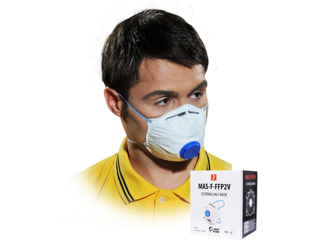 Respirátor proti prachu s ventilom.- Typ FFP2: Ochrana pred netoxickými alebo stredne toxickými kvapalnými alebo pevnými aerosólmi (napr. olejová hmla) v koncentráciách do 12,5xOEL alebo 10xAPF (OEL)