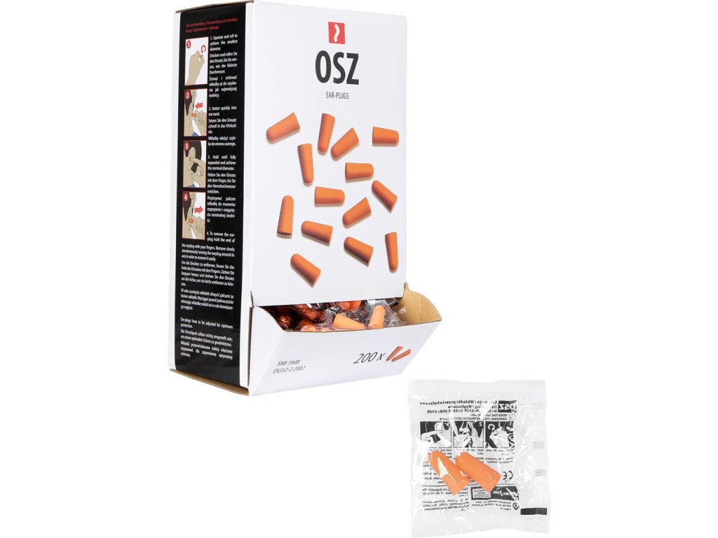 Jednorazové štuple do uší vyrobené z polyuretánovej peny.Zvuková izolácia: H=38 dB, M=37 dB, L=35 dB, SNR=39 dB
