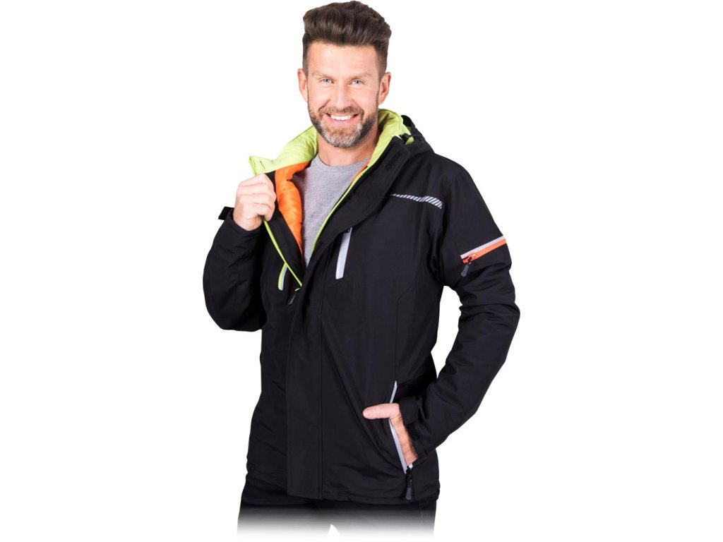 Pánska zateplená ochranná bunda. - Materiál: 100% polyester, 230 g/m² - Výplň: 100% polyester, 140 g/m² - Podšívka: 100% polyester 190T, 50 g/m² - Zapínanie na zips s dodatočným suchým zipsom - Stojací golier - Odnímateľná kapucňa so sťahovaním na šnúrku - Dve spodné a dve náprsné vrecká so zipsom - Vrecko na zips na ľavom rukáve - Dve vnútorné vrecká so zapínaním na suchý zips, vrátane jedného na mobilný telefón - Rukávy so zapínaním na suchý zips pre nastavenie šírky - Reflexné prvkyDodatočné parametre