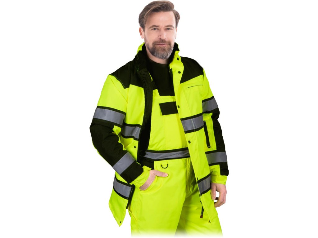 MILLING zateplená ochranná bunda, dlhá verzia, pánska. - Látka: 100% 300D 180 g/m² polyuretánom potiahnutá 100% polyesterová Oxford tkanina - 180 g/m² 100% polyesterová prešívaná podšívka - 60 g/m² 100% polyesterová taftová prešívaná podšívka - Zapínanie na zips s dodatočnými patentkami - Flísom podšitý stojačik - Kapucňa so sťahovacími šnúrkami, ktorá sa dá zrolovať a zaistiť suchým zipsom - Dve spodné vrecká a jedno náprsné vrecko - Vrecko na zips na ľavom rukáve - Vnútorné vrecko so zapínaním na suchý zips - Manžety rukávov so zapínaním na suchý zips pre nastavenie šírky - Fluorescenčná tkanina a reflexné pruhy Zvýšená viditeľnosť - ideálne pre cestné posádky a iné osoby činné v trestnom konaníDodatočné parametre
