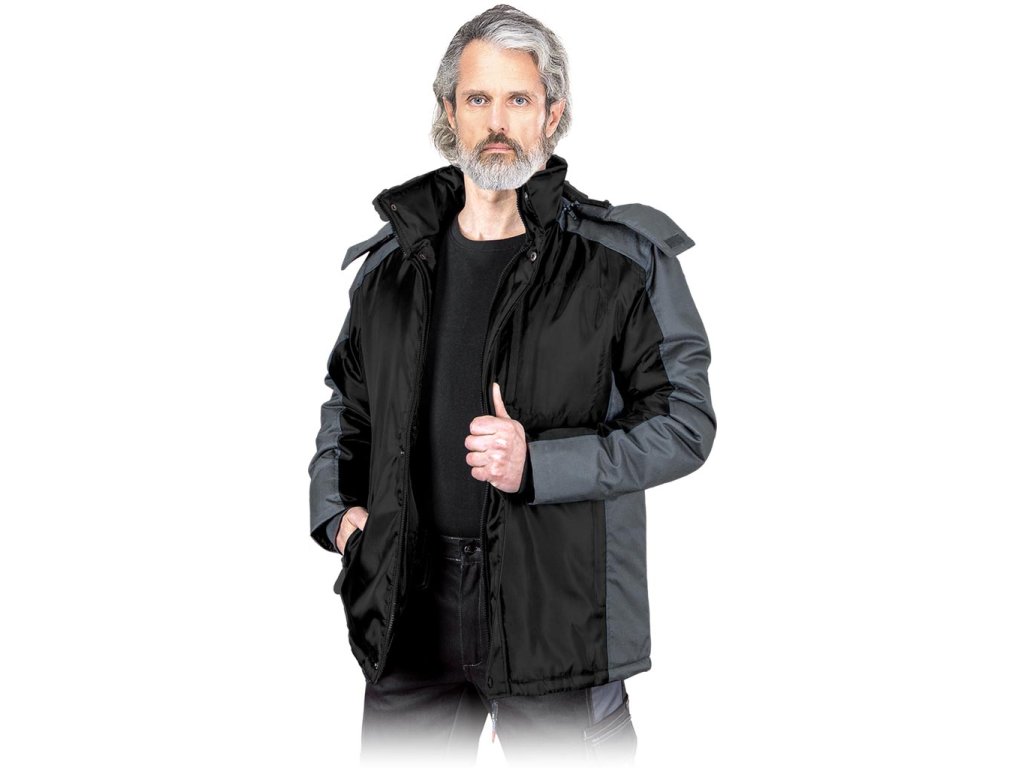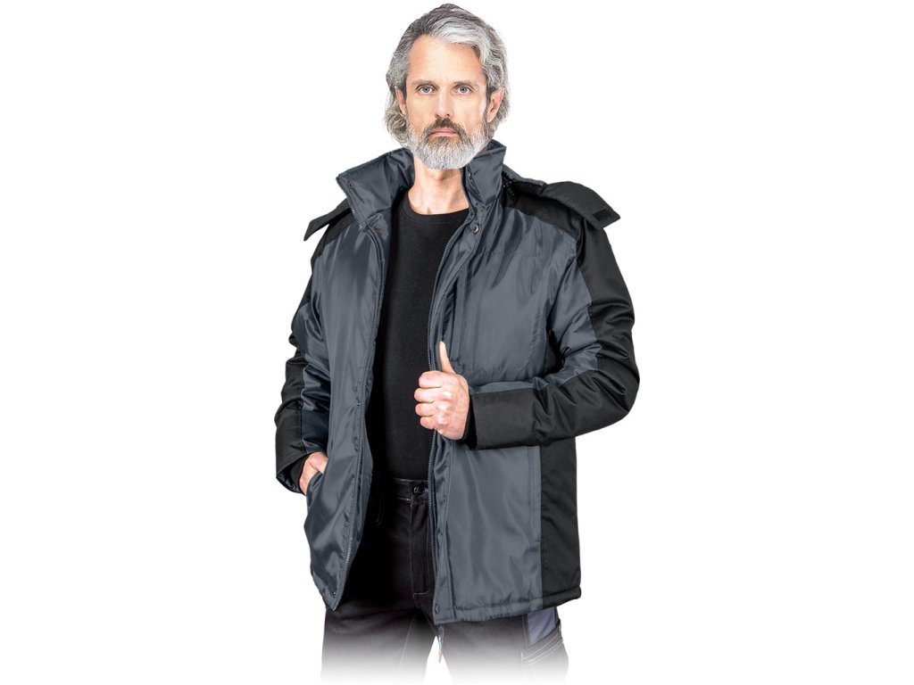 Pánska zateplená ochranná bunda. - Hlavný materiál: 100% polyester 200D Oxford tkanina s polyuretánovým záterom 120 g/m² - Kontrastné vložky: 100% polyester 200D Oxford tkanina s polyuretánovým záterom 120 g/m² - Výplň: 100% polyester s gramážou 280 g/m² - Prešívaná podšívka: 100% polyester s gramážou 60 g/m² - Zapínanie na zips s dodatočnými patentkami - Stojací golier - Odnímateľná kapucňa s dodatočným suchým zipsom pre väčšiu ochranu hlavy - Dve spodné vrecká a jedno náprsné vrecko na zips - Vnútorné vrecko so zapínaním na suchý zips - Rebrované manžety - Fit: REGULARDodatočné parametre