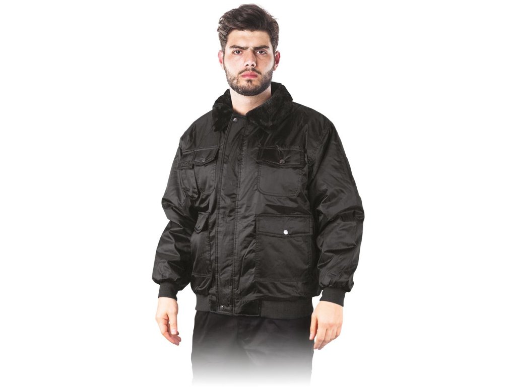 Zateplená bunda. Ideálne pre bezpečnostné spoločnosti, s vodoodpudivým náterom. - 100% polyester na PVC povlaku - výplň 100% polyester 200 g/m² - 100% polyester 190T taftová podšívka - Zapínanie na zips s dodatočnými patentkami - Izolovaná penová výplň, prešívané vnútro - Rebrované manžety a spodný lem - Golier z ovčej kože - Sedem vreciek, päť so zapínaním na patentky a jedno na mobilný telefón so zapínaním na suchý zipsDodatočné parametre