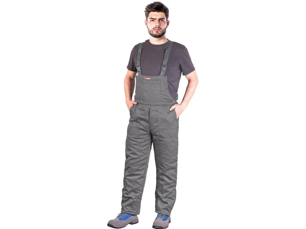 Pánske zateplené ochranné montérky. - Materiál: 65 % polyester, 35 % bavlna, 180 g/m² - Výplň: 100% polyester, 180 g/m² - Prešívaná podšívka: 100% polyester 190T taft, 50 g/m² - Zapínanie na gombík s chlopňou - Dve náprsné vrecká, jedno na zips a jedno s priehradkou - Dve bočné vrecká - Jedno dlhé vrecko na pravej nohavici - Nastaviteľná dĺžka trakmi, ktoré majú vzadu aj elastický pás - Elastický pás vzadu a gombíky pre lepšie prispôsobenie - Fit: REGULARDodatočné parametre