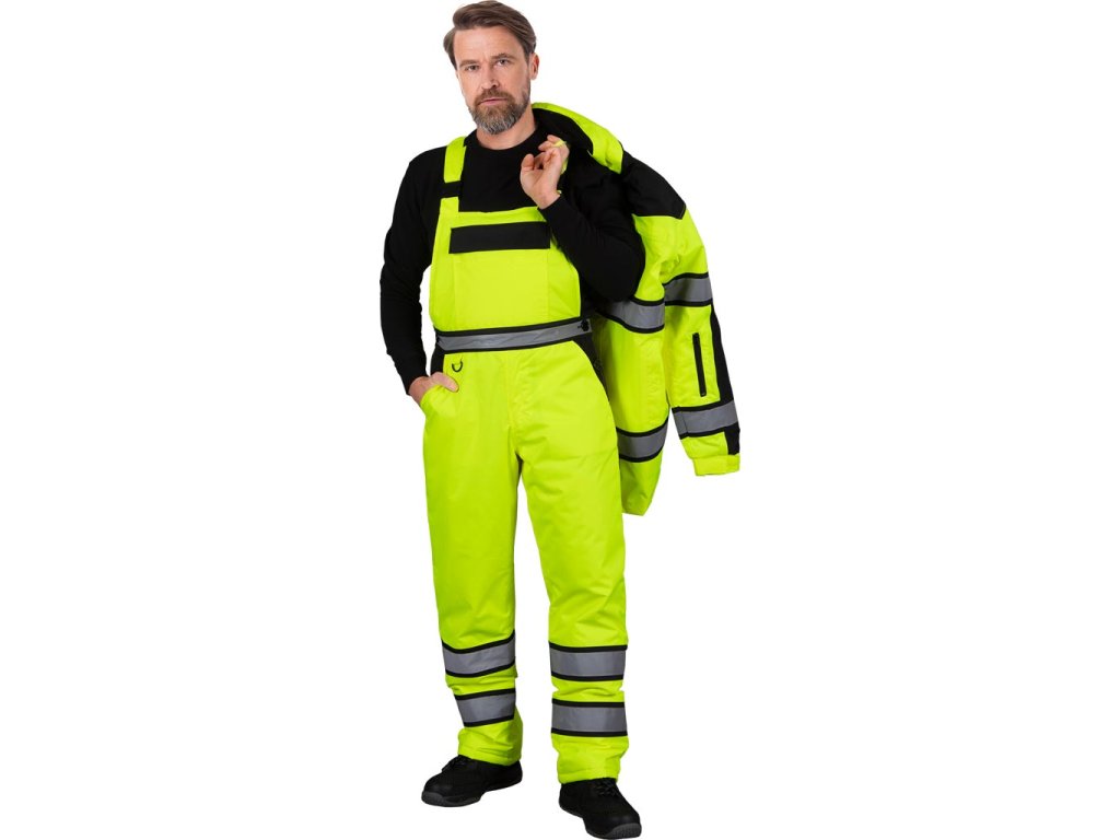 Pánske zateplené ochranné montérky MILLING. - Látka: 100% polyester 300D Oxford s polyuretánovým záterom, 180 g/m² - Výplň: 100% polyester, 180 g/m² - Prešívaná podšívka: 100% polyester taft, 60 g/m² - Zapínanie na zips s chlopňou - Náprsné vrecko so zapínaním na suchý zips a ďalšie priehradky - Dve bočné vrecká a dve zadné vrecká so zapínaním na suchý zips - Dvojité dlhé vrecko na nohavici - Nastaviteľná dĺžka trakmi, ktoré majú vzadu aj gumu - Bočné gombíky v páse pre lepšie prispôsobenie - Klip na kľúče - Slučka na kladivo na ľavej nohe - Fluorescenčná tkanina a reflexné pruhy Zvýšená viditeľnosť - Ideálne pre cestné posádky a iný personál činný v trestnom konaní - Štýl: REGULARDodatočné parametre