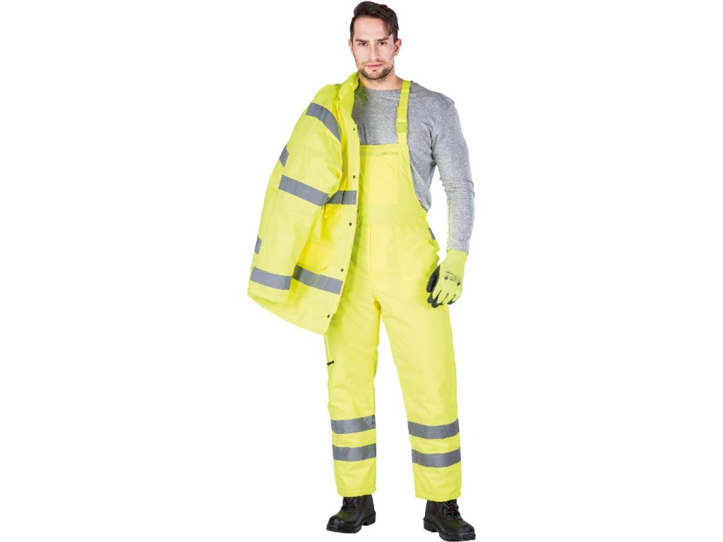 Zimné montérky s reflexnými pruhmi na spodnej časti nohavíc. - Plášť: 100% polyesterová Oxford tkanina potiahnutá polyuretánom, 180 g/m² - Podšívka: 100% polyester, 130 g/m² - Podšívka: 100% polyester taft 190T - dĺžkovo nastaviteľné traky - Dve bočné vrecká - Ďalšie vrecko na hornej časti nohavíc - Ideálne pre cestárov - Spĺňa požiadavky normy EN ISO 20471 (trieda 1).Dodatočné parametre