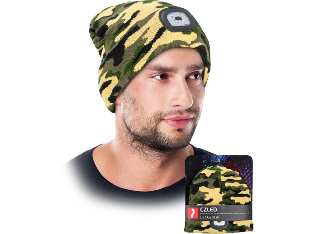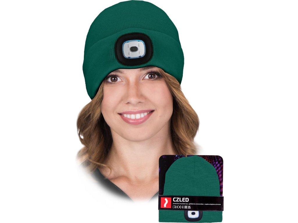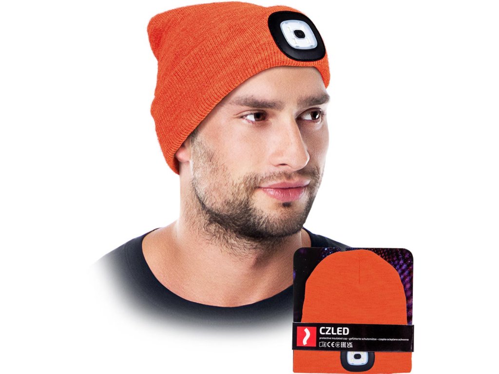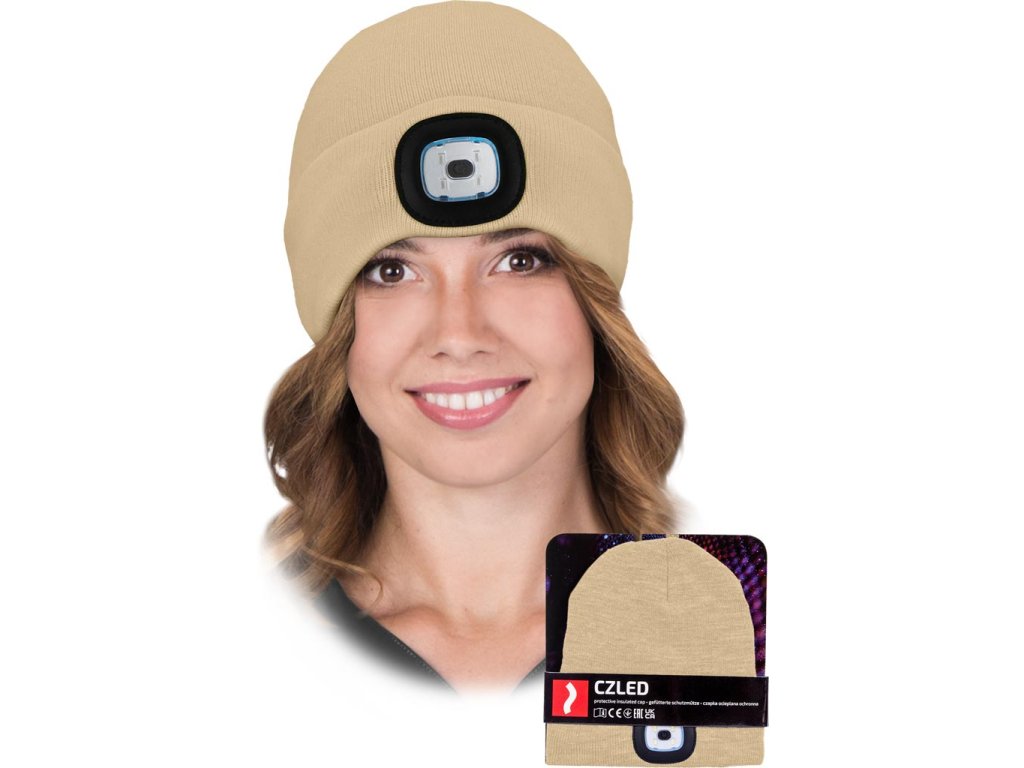 LED zimná čiapka s vymeniteľnou baterkou. - Úplet: 100% akrylová priadza, 200 g/m²- Zateplené 100% polyesterovým rúnom, 110 g/m²