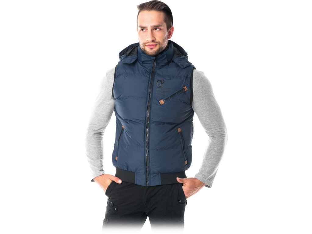 Pánska prešívaná, zateplená ochranná vesta. - Plášť: 100% nylon potiahnutý 40D PVC, 111 g/m² - Výplň: 100% polyester, 200 g/m² - Podšívka: 100% polyester 210T, 47 g/m² - Zapínanie na zips - Odnímateľná kapucňa so sťahovacími šnúrkami a dodatočným zacvakávacím uzáverom pre väčšiu ochranu hlavy - Tri vrecká na zips: dve bočné vrecká a jedno šikmé náprsné vrecko - Jedno vnútorné vrecko na doklady - Rebrované manžety a lem poskytujú dodatočnú ochranu pred vetrom - Ideálne pre prácu aj voľnočasové aktivity - Fit: REGULARDodatočné parametre