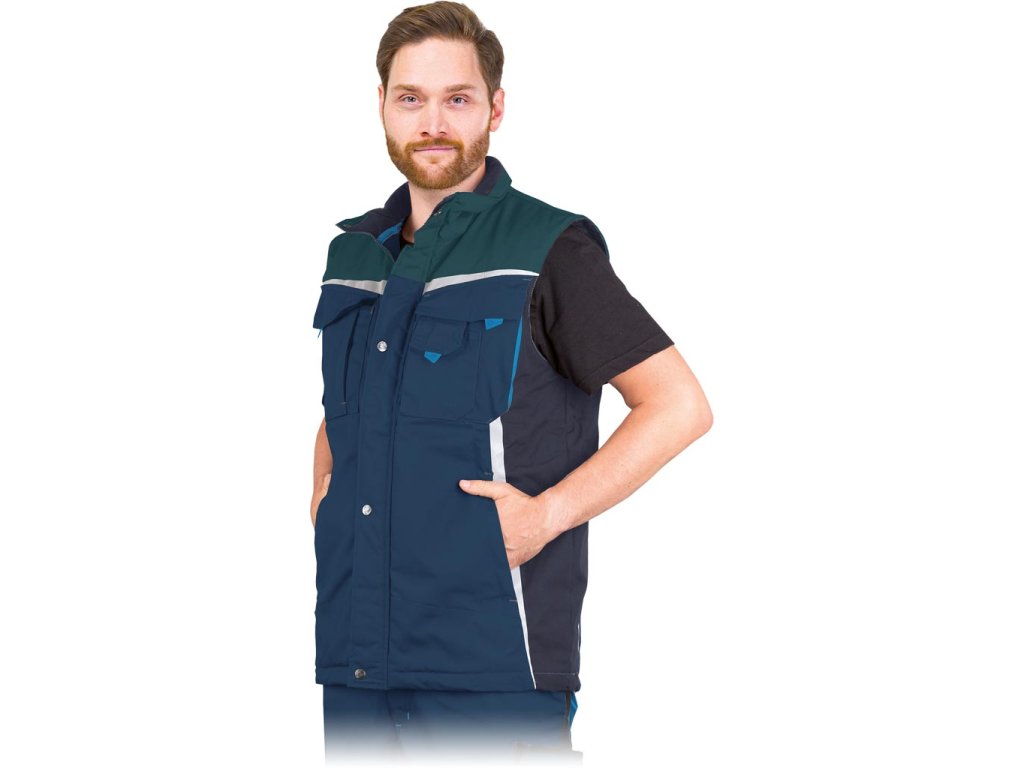 Zateplená ochranná vesta NEW AGE z plátenného materiálu. - 65 % polyester, 35 % bavlna, 270 g/m² - Podšívka 100% polyester, 130 g/m² - 100% polyester 190T taftová podšívka, 50 g/m² - Zapínanie na zips s dodatočným zaklapnutím - Stojací golier - Štyri náprsné vrecká, z toho tri so zapínaním na suchý zips a jedno na zips - Dve spodné bočné vrecká so zipsom - Dve vnútorné vrecká, jedno na zips, druhé na suchý zips - Reflexné prvky - Zvýšená odolnosť vďaka vložkám Cordura - Moderný dizajn a farbyDodatočné parametre