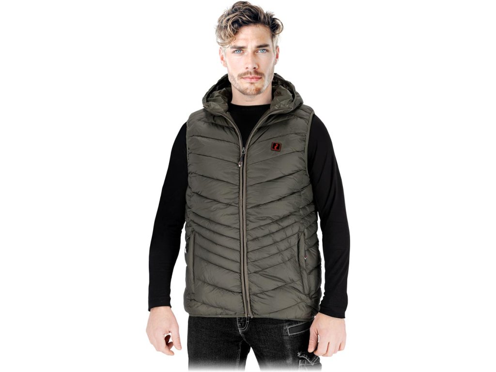 Pánska prešívaná, zateplená ochranná vesta. - Látka: 100% nylon, 35-36 g/m² - Výplň: 100% polyester, 270 g/m² - Podšívka: 100% polyester taft, 52 g/m² - Zapínanie na zips - Kapucňa - Dve spodné vrecká na zips - Vnútorné vrecko so zapínaním na suchý zips - Elastický lem na ramenách a spodnom leme - Fit: REGULARDodatočné parametre