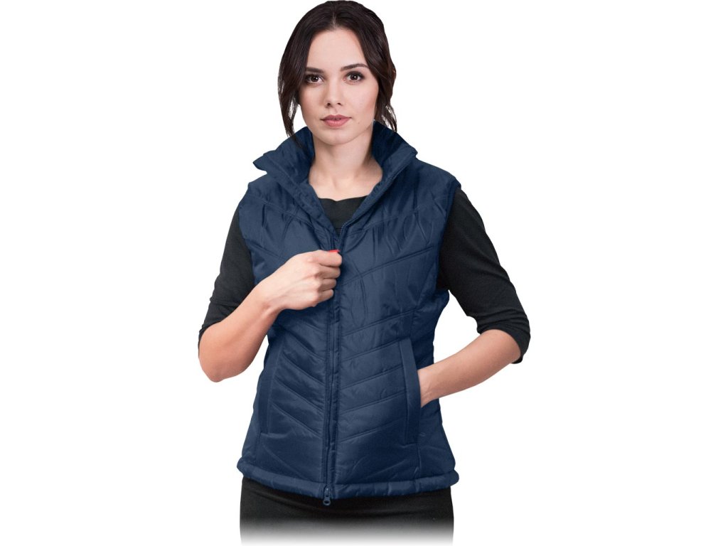 Dámska prešívaná, zateplená ochranná vesta. - Tkanina: 100% polyester - Výplň: 100% polyester, 300 g/m² - Podšívka: 100% polyester taft 190T - Zapínanie na dvojcestný zips - Dve bočné vrecká na zips - Vypasovaná vestaDodatočné parametre