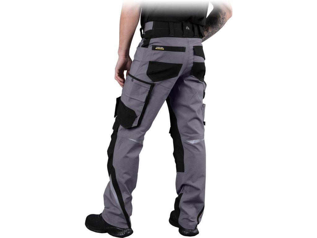 Kapsáčové pánske pracovné nohavice do pása HARVERAIR L.HOLLMAN. - materiál: 97 % bavlna, 3 % elastan - gramáž 240 g/m² - zapínanie na gombík a zips - dve bočné vrecká - dve zadné vrecká, z ktorých jedno je so zapínaním na suchý zips - vrecká na nohaviciach vrátane vrecka na mobilný telefón - vrecká na kolenách na chrániče kolien so zapínaním na suchý zips - reflexné prvky - tvar "S" - predtvarované nohavice pre lepšie prispôsobenie - testované na prítomnosť škodlivých látok v súlade s normou OEKO-TEX® 100