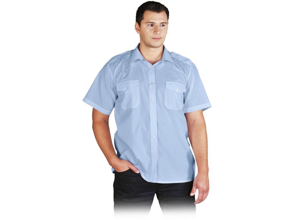 Pánska košeľa. - Materiál: 65% polyester, 35% bavlna - Gramáž: 100 g/m² - Zapínanie na gombík - Golier s golierom - Krátke rukávy - Dve náprsné vrecká na gombíky - Nárameníky - Ideálne do práce aj na každodenné nosenieDodatočné parametre