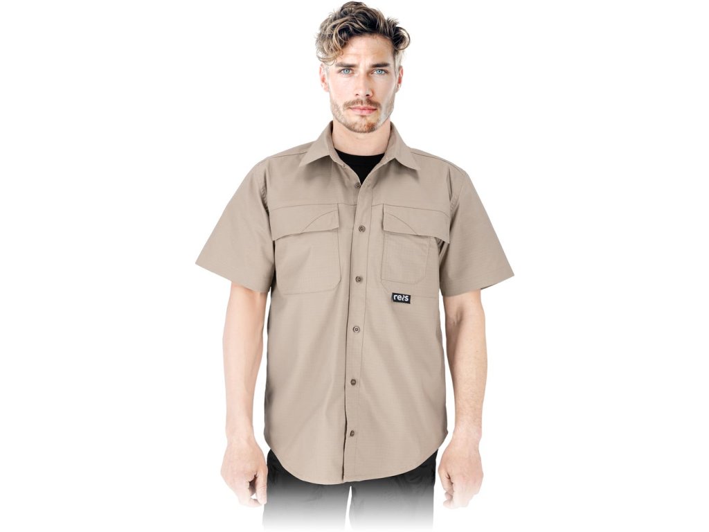 Pánska košeľa. - Rip-stop tkanina: 97 % bavlna, 3 % elastan, 220 g/m² - Sieťovaná podšívka na chrbte: 100% polyester, 130 g/m² - Rip-stop tkanina chráni pred roztrhnutím pri zachytení o vyčnievajúci predmet - Zapínanie na gombík - Golier so zapínaním na suchý zips vzadu - Krátke rukávy - Dve náprsné vrecká - Ventilačný systém na chrbte umožňuje cirkuláciu vzduchu a zvýšený komfort - Ideálne pre lesníkov a rybárov - Ideálne na prežitie - Fit: REGULARDodatočné parametre