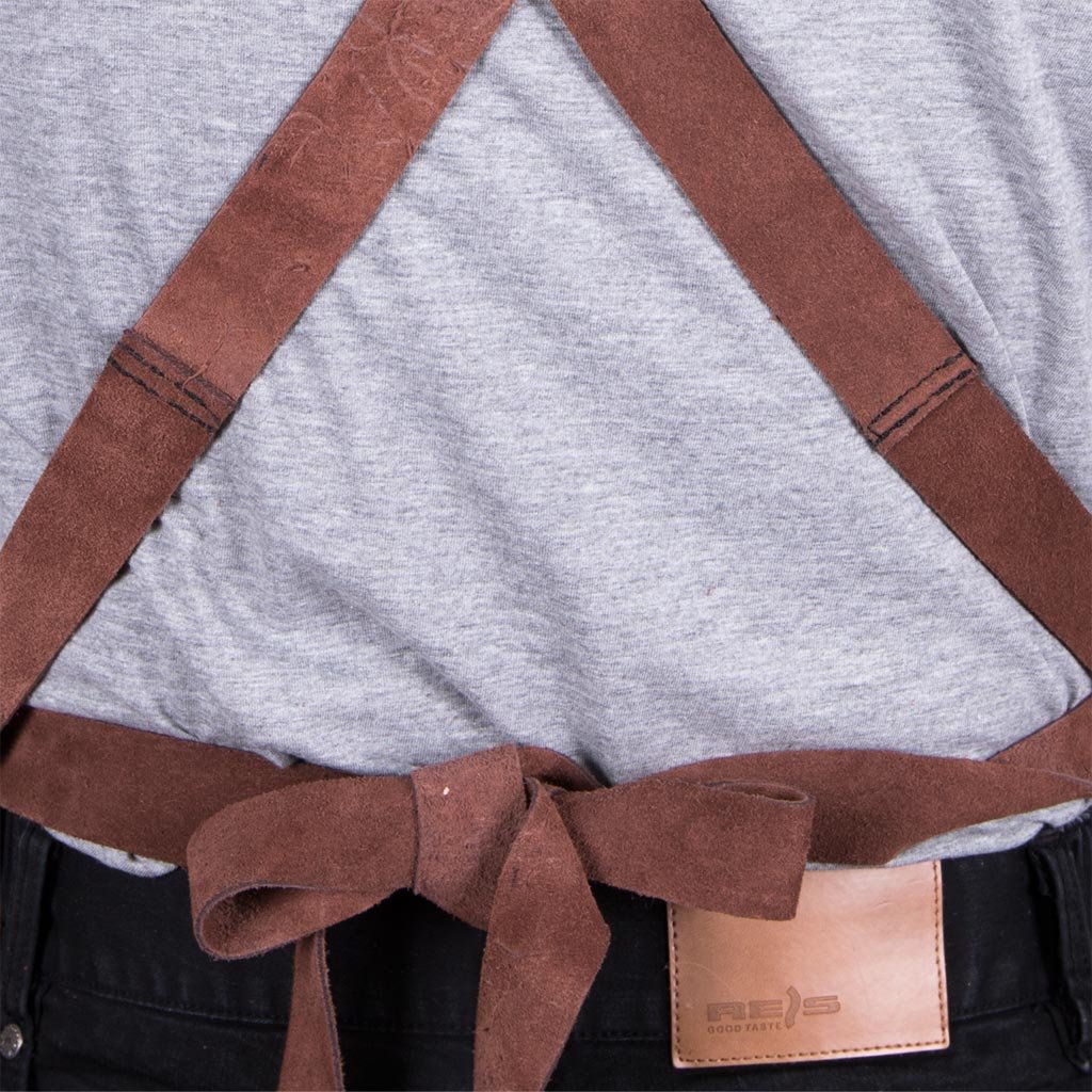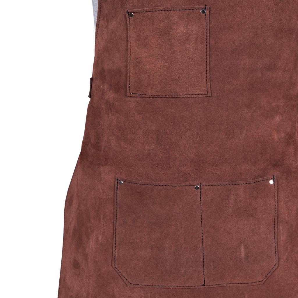 Kožená pracovná zástera REIS - Štiepaná hovädzia koža a semiš - Hrúbka kože: 1,2-1,6 mm - Popruhy zapínané vpredu kovovými prackami, nastaviteľná dĺžka - Vyrobené z jedného kusu kože - Má tri vrecká na vonkajšej strane, z toho dve v strede a jedno v hornej časti - Ideálne pre remeselníkov - Poskytuje ochranu pred činnosťami s minimálnym rizikom, pred mechanickými faktormi, ktorých účinky sú povrchové
