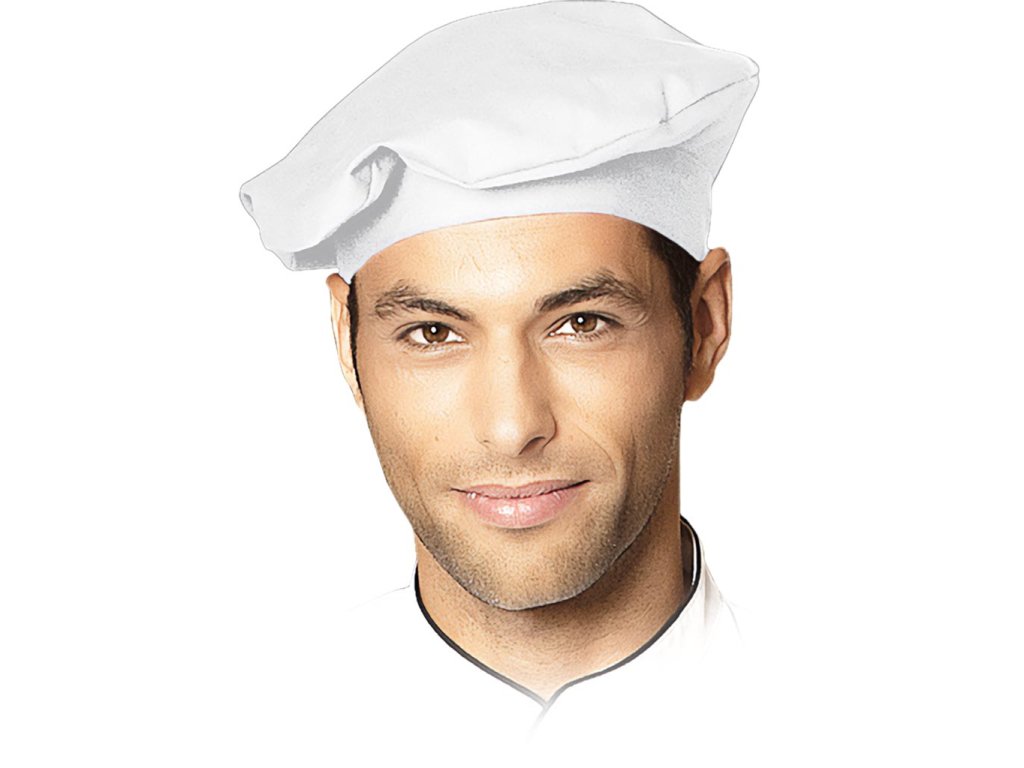 Plochý kuchársky klobúk. - Materiál: 65% polyester / 35% bavlna - Gramáž: 215 g/m² - Nízke žmolkovanie - Jednoduché čistenie - Stálofarebný - Výška pása: 3,5 cm - Možno prať do 95°CDodatočné parametre