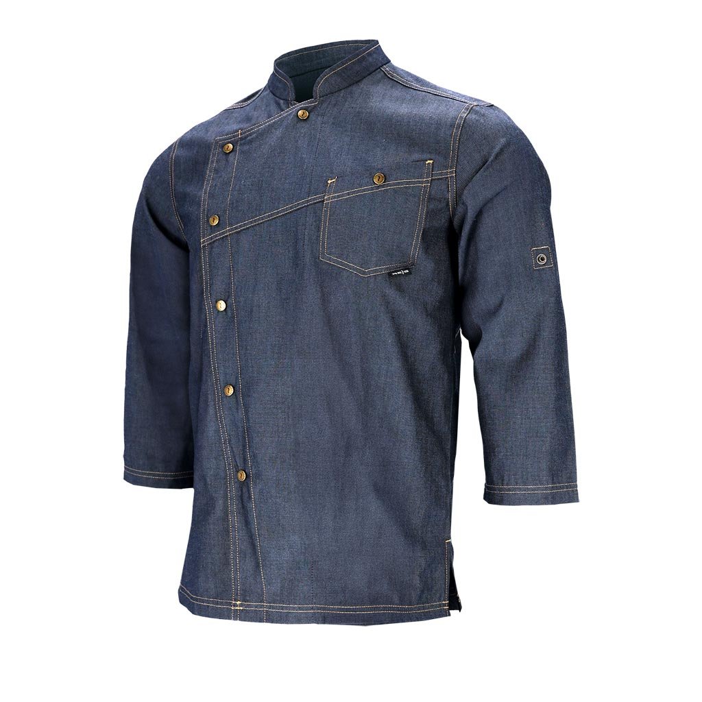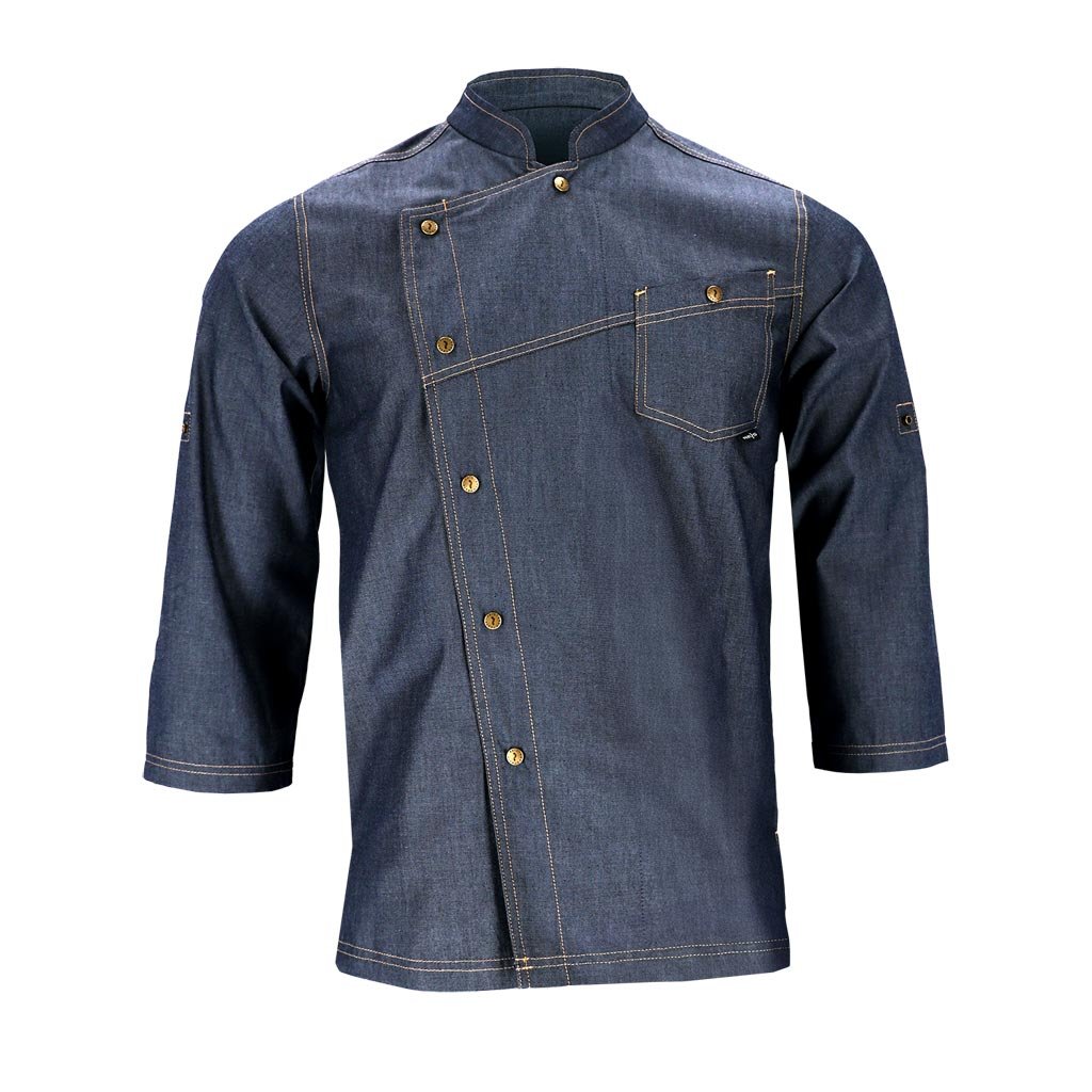 Pánsky kuchársky rondon s dlhým rukávom REIS . - Materiál: 65 % polyester, 35 % bavlna - Gramáž: 170 g/m² - Zapínanie na šesť patentných gombíkov - Stojatý golier - Vonkajšie vrecko na ľavej strane bundy - Rukávy sa dajú vyhrnúť a zapnúť - Spodná časť bundy s bočnými rozparkmi - Možno prať v práčke do 40 °C