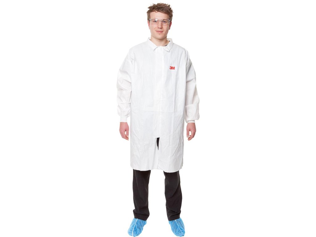 Pánska laboratórny plášť 4440 3M. - vyrobený z mikroporézneho PE laminátu - zapínanie na zips - rukávy z pleteniny - má antistatické vlastnosti - poskytuje ochranu pred neškodnými látkami