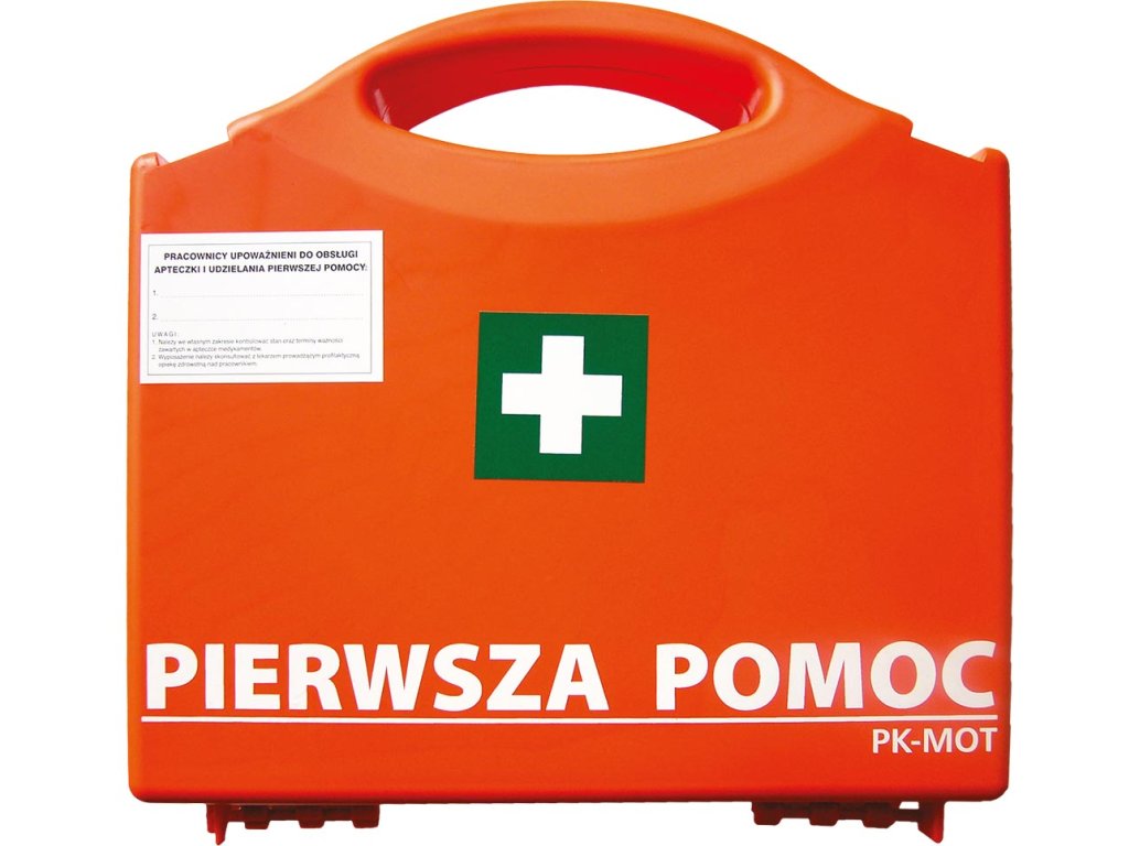 Prenosná súprava prvej pomoci na použitie na mieste. - Vyrobené z polypropylénu - Zariadenie v súlade s DIN 13164:2022 - 5m x 2,5cm omietka na cievke – 1 ks. - Sada náplastí – 14 ks. (6 x 10 cm (4 ks), 4,3 x 7,2 cm (2 ks), 12 x 2 cm (2 ks), 1,9 x 7,2 cm (2 ks), 2,5 x 7,2 cm (4 ks)) - elastický obväz 4m x 6cm – 2 ks. - elastický obväz 4m x 8cm – 3 ks. - 4x2 páry jednorazových vinylových rukavíc - obväz 60x80 cm – 1 ks. - Obväz s obkladom (individuálny obväz) 6x8 cm – 1 ks. - Obväz s obkladom (individuálny obväz) 8x10 cm – 2 ks. - Obväz s obkladom (individuálny obväz) 10x12 cm – 1 ks. - Obklad na ranu 10x10 cm – 6 ks/3 bal. - Rozmery trojuholníkového obväzu: 96x96x136 cm – 1 ks. - Termálna deka – 1 ks. - Lekárska maska - 2 ks. - nožnice - 1 ks. - vlhčené obrúsky - 2 ks. - Návod na prvú pomoc – 1 ks. - Respirátor - 1 ks. - S vešiakom na stenu - Určené pre pracoviská - Rozmery lekárničky: 27x27x9,5 cmDodatočné parametre