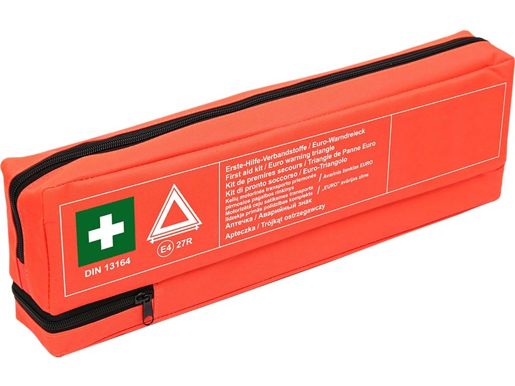 Lekárnička do auta - Kombinovaná súprava s trojuholníkom. - Vyrobené z nepremokavej tkaniny - So samostatnou trojuholníkovou časťou - Zariadenie v súlade s DIN 13164:2022 - 5m x 2,5cm omietka na cievke – 1 ks. - Sada náplastí – 14 ks. (6 x 10 cm (4 ks), 4,3 x 7,2 cm (2 ks), 12 x 2 cm (2 ks), 1,9 x 7,2 cm (2 ks), 2,5 x 7,2 cm (4 ks)) - Elastická bandáž 4m x 6cm – 2 ks. - Elastická bandáž 4m x 8cm – 3 ks. - Jednorazové vinylové rukavice – 4 ks/2 páry - Obväz 60x80 cm – 1 ks. - Obväz s obkladom (individuálny obväz) 6x8 cm – 1 ks. - Obväz s obkladom (individuálny obväz) 8x10 cm – 2 ks. - obväz s obkladom (individuálny obväz) 10x12 cm – 1 ks. - obklad na rany 10x10 cm – 6 ks/3 bal. - trojuholníkový obväz rozmery: 96x96x136 cm – 1 ks. - termodeka – 1 ks. - lekárska maska – 2 ks. - nožnice - 1 ks. - navlhčené obrúsky – 2 ks. - návod na prvú pomoc – 1 ks. - rozmery lekárničky: 45x14x5 cmDodatočné parametre