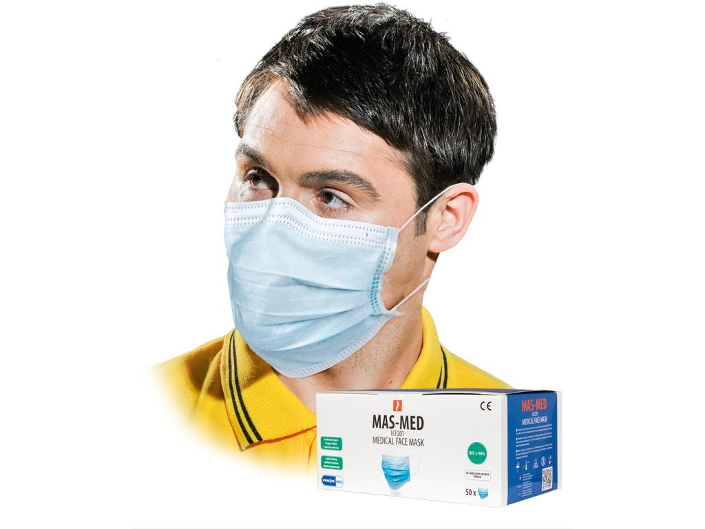 Lekárska trojvrstvová polypropylénová maska.- Hrúbka: 25 g/m² + 25 g/m² + 25 g/m² (prvá/druhá/tretia vrstva)