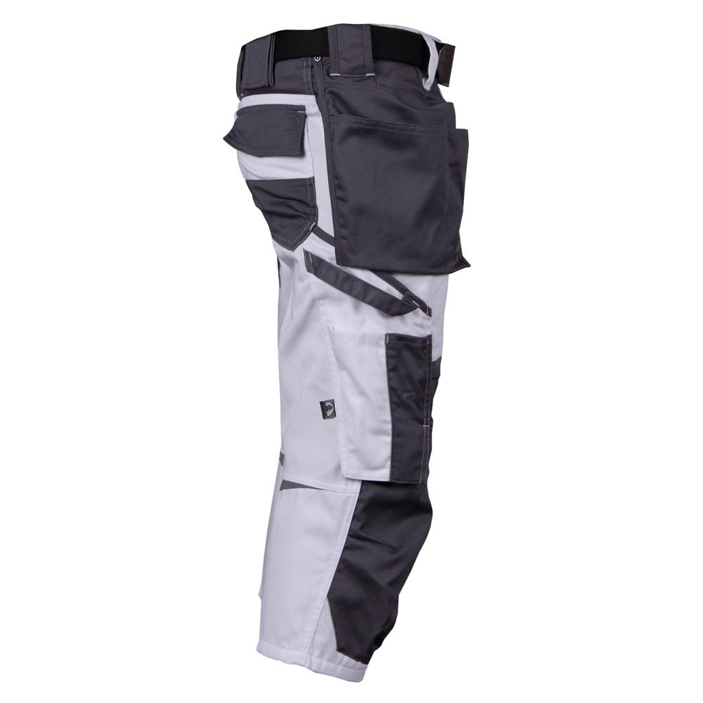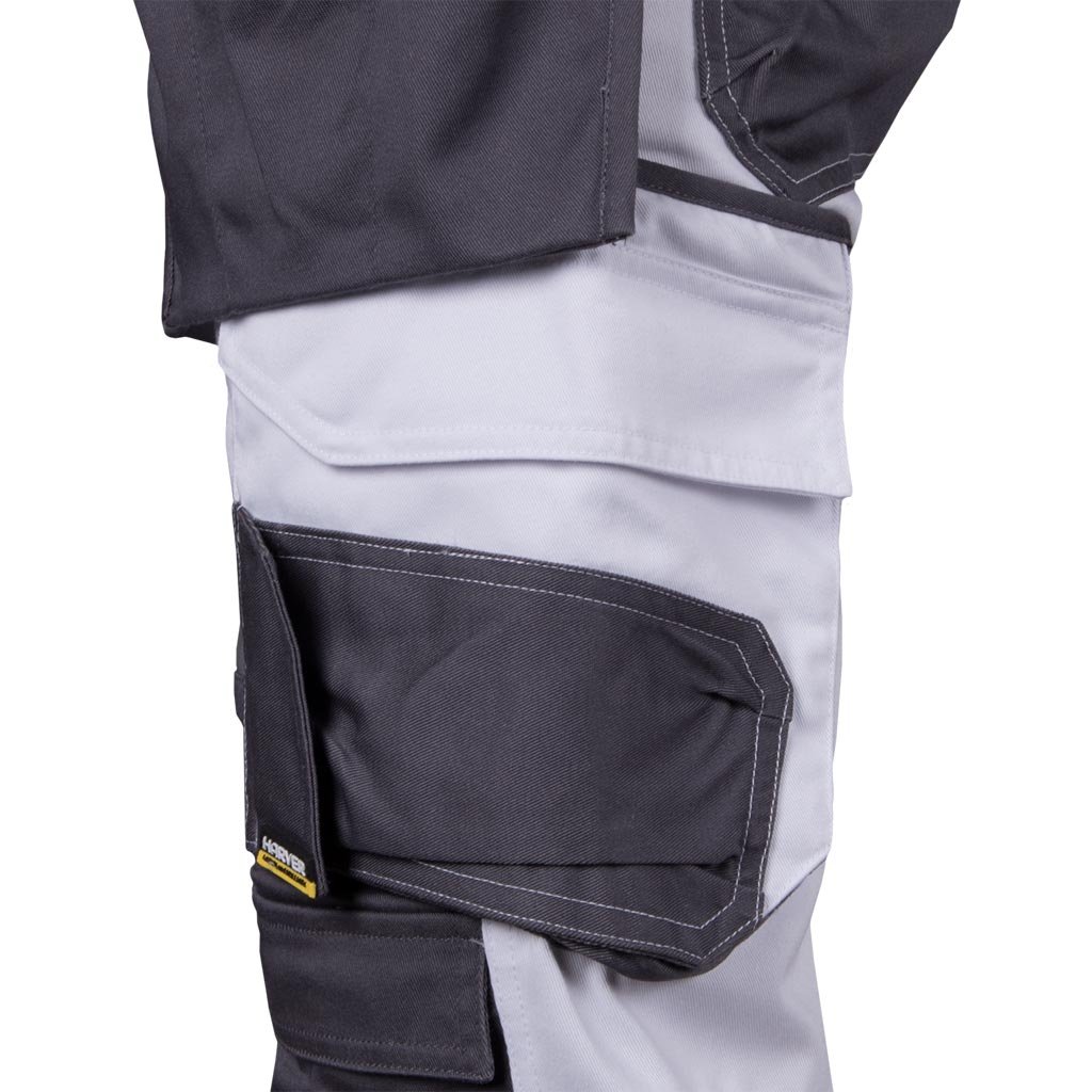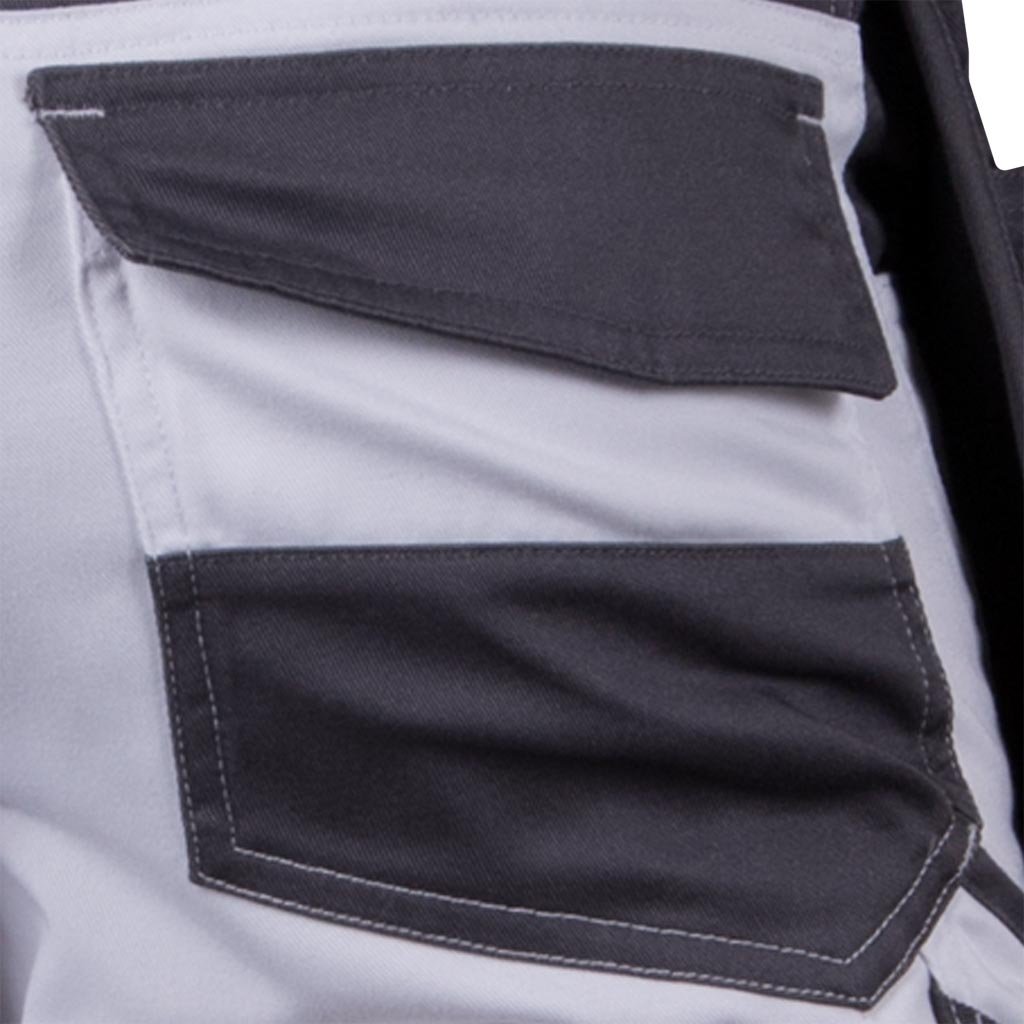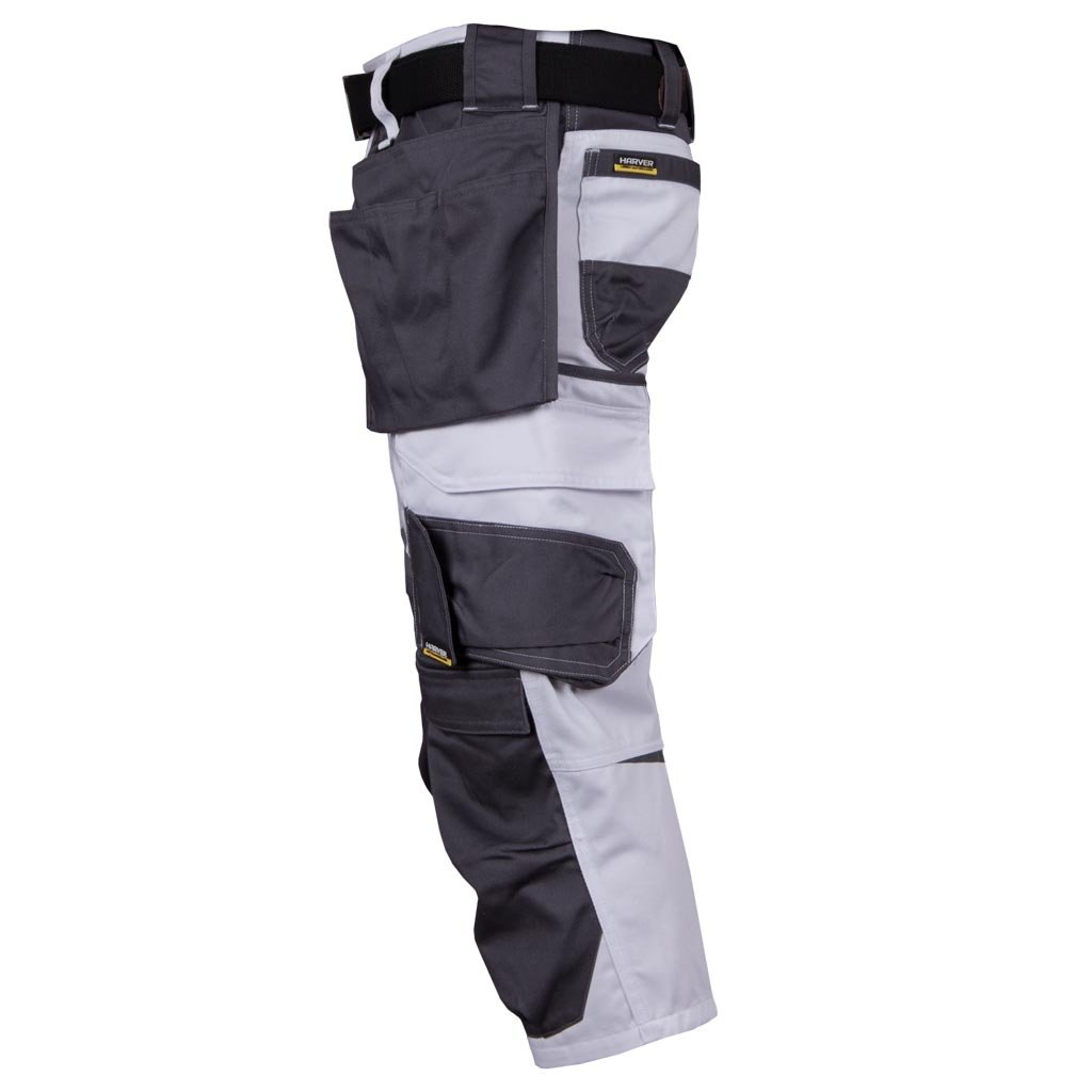 Maliarské monterky 3/4 HARVER značky L.HOLLMAN ako stvorene na prácu v horúcich dňoch. - Materiál: 65 % polyester, 35 % bavlna - Hmotnosť: 290 g/m² - Zapínanie na gombík a zips - Štyri bočné vrecká vrátane dvoch všitých vreciek ideálnych na uloženie náradia - Dve zadné vrecká, vrátane jedného so zapínaním na suchý zips - Vrecká na nohaviciach vrátane vrecka na mobilný telefón - Klip na kľúče - Vrecká na kolenné chrániče so zapínaním na suchý zips - Reflexné prvky pre lepšiu viditeľnosť - Testované na škodlivé látky v súlade s normou OEKO-TEX® 100