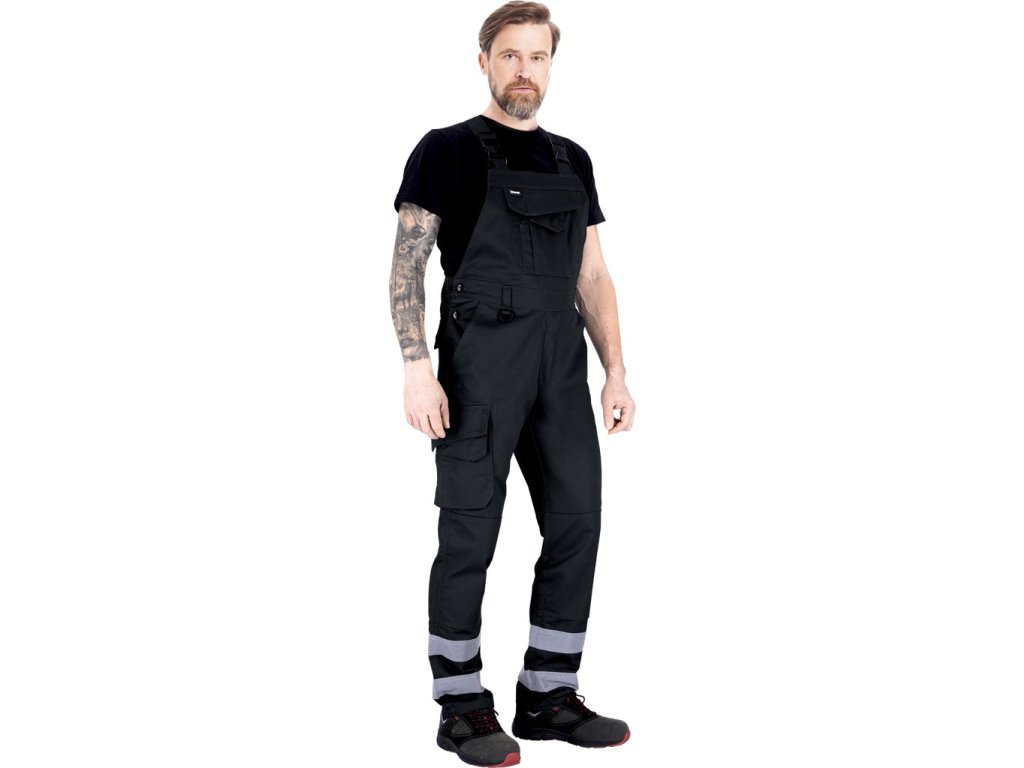 Montérky na traky HIVIS značky L.HOLLMAN pre mužov - Materiál: 65 % polyester, 35 % bavlna - Gramáž: 270 g/m² - Zapínanie na zips s chlopňou - Dvojité náprsné vrecko so zapínaním na patentný patent a ďalším priestorom - Dve bočné vrecká a dve zadné vrecká so zapínaním na patentný patent - Tri vrecká na nohaviciach, vrátane jedného dlhého s priehradkami - Vrecká na chrániče kolien vložené zospodu - Dĺžka nastaviteľná trakmi, ktoré majú vzadu aj gumičku - Gombíky v páse pre lepšie prispôsobenie - Klip na kľúče - Reflexné pruhy pre zvýšenú viditeľnosť - Strih: REGULAR