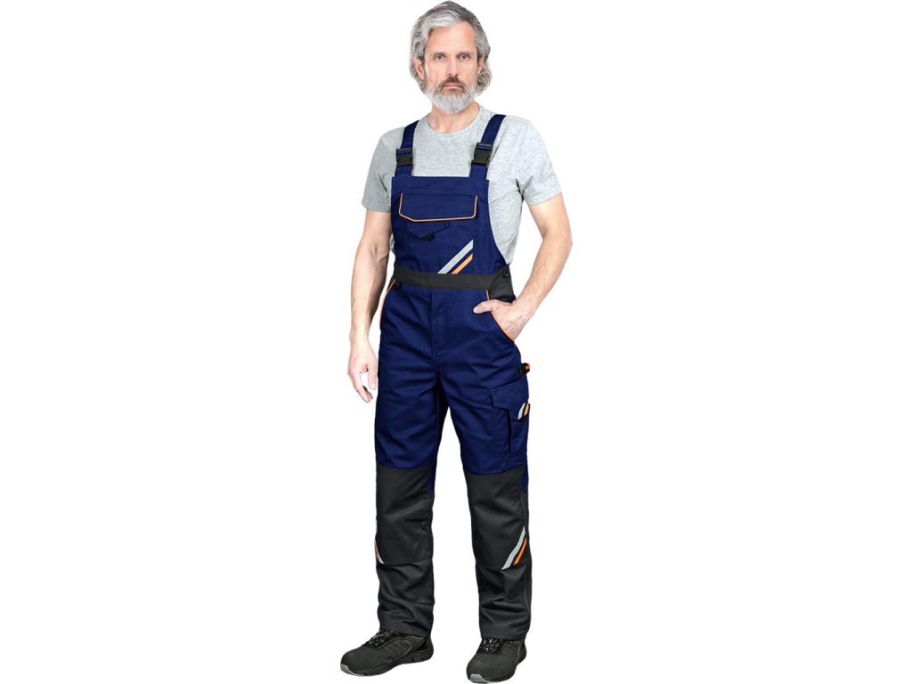 Pánske pracovné nohavice na traky PROX REIS.. - materiál: 65% polyester, 35% bavlna - gramáž 295-300 g/m² - výplne zo žltej a oranžovej látky 80% polyester, 20% bavlna - náprsné vrecko so zapínaním na suchý zips - dve bočné vrecká - dve zadné vrecká so zapínaním na suchý zips - štyri vrecká na nohaviciach, z toho dve so zapínaním na suchý zips - elastický pás v zadnej časti zvyšuje voľnosť pohybu a umožňuje lepšie prispôsobenie - nastaviteľný pás na gombíky a dĺžku s trakmi - vrecká na kolenách na chrániče kolien - klip na kľúče - moderný dizajn vďaka - výplniam s reflexnými prvkami - osvedčená kvalita, vylepšený dizajn