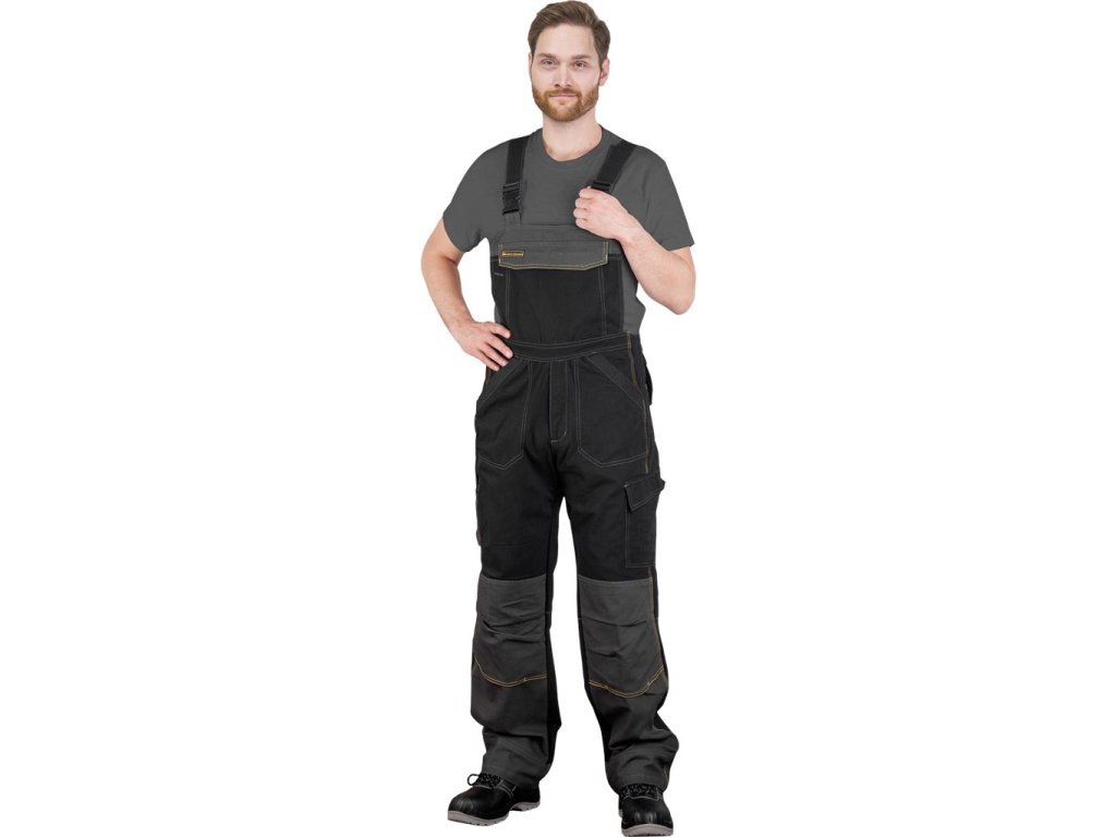 Pánske montérky na traky SAFESHELL značky L.HOLLMAN - Materiál: 100 % bavlnené plátno - Gramáž: 295 g/m² - Šesť vreciek: dve vpredu, tri vzadu, vrátane dvoch so zapínaním na suchý zips a ďalšie vrecko na mobilný telefón, tiež so zapínaním na suchý zips - Tri vrecká na nohaviciach, vrátane jedného so zapínaním na suchý zips a veľkého vrecka na zips v hornej časti - Elastická tkanina v rozkroku zaisťuje neobmedzený pohyb bez pocitu naťahovania - Elastický pás pre nastaviteľnú šírku, ktorý umožňuje nohaviciam lepšie padnúť - Elastické, nastaviteľné traky spolupracujú s používateľom pri ohýbaní - Vrecká na chrániče kolien - Určené pre ľudí, ktorí sa pri práci dynamicky pohybujú a cenia si pohodlie v každej situácii - Moderný, ergonomický strih zvyšuje slobodu pohybu a zaisťuje maximálne pohodlie aj počas najťažšej práce