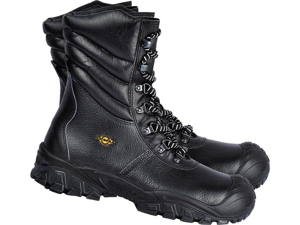 Nepremokavé pracovné topánky S3 URAL COFRA. - vyrobená z nepremokavej kože - obuv v štýle čižiem zakrývajúca členok a časť lýtka - šnurovanie - zateplená podšívka z eko-kožušiny, ktorá je dokonale izolujúca, priedušná a odolná voči oderu - protisklzová, olejuvzdorná, antistatická a flexibilná podrážka z dvojitého polyuretánu so zvýšenou odolnosťou voči mínusovým teplotám - antistatická, vymeniteľná stielka EVANIT s anatomickým tvarom, potiahnutá priedušnou tkaninou - oceľová špička odolná voči nárazom 200 J a tlakovým silám do 15 kN - gumený povlak zabraňuje oderu špičky pri trení o zem - kategória UK S3 CI SC FO SR - spĺňa požiadavky nasledujúcich noriem: EN20344, EN20345