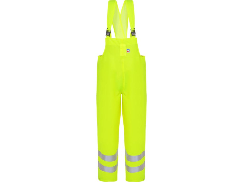 Vysoko reflexné, vodeodolné montérky na traky WADERS pre náročných. Vyrobené z materiálu DynaFlex, odolného voči silnému dažďu, vetru a mechanickému poškodeniu. Spĺňa požiadavky na osobnú ochranu kategórie II, trieda viditeľnosti 2. Dva reflexné pruhy 3M na dolnej časti nohavíc. Vybavené elastickými trakmi s nastaviteľnými prackami. Metóda spájania materiálov: vysokofrekvenčné zváranie, ktoré zaisťuje 100 % tesnosť švov. Určené pre stavebný priemysel, pracovníkov na cestách a diaľniciach, pracovníkov letísk a riadenie dopravy.