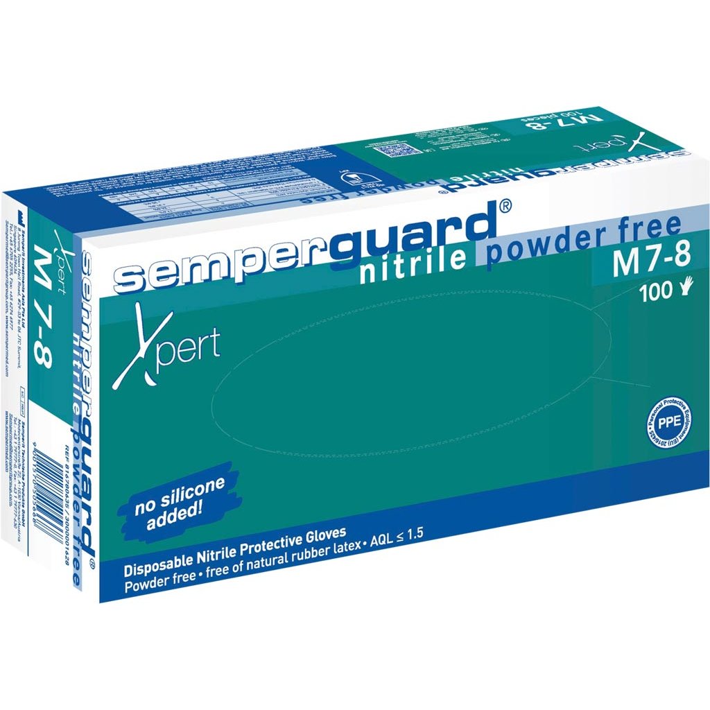 Nitrilové rukavice SEMPERGUARD XPERT. - hmotnosť na kus: 6,3 g - vyrobené z vysoko odolného nitrilu - zvýšená odolnosť vďaka zväčšenej hrúbke - bez púdru, ale s podšívkou pre jednoduchšie nasadzovanie a vyzliekanie a väčšie pohodlie pri používaní - vhodné pre pravú aj ľavú ruku - schválené pre kontakt s potravinami - balené po 100 kusoch v krabici (veľkosť XL 90 ks)