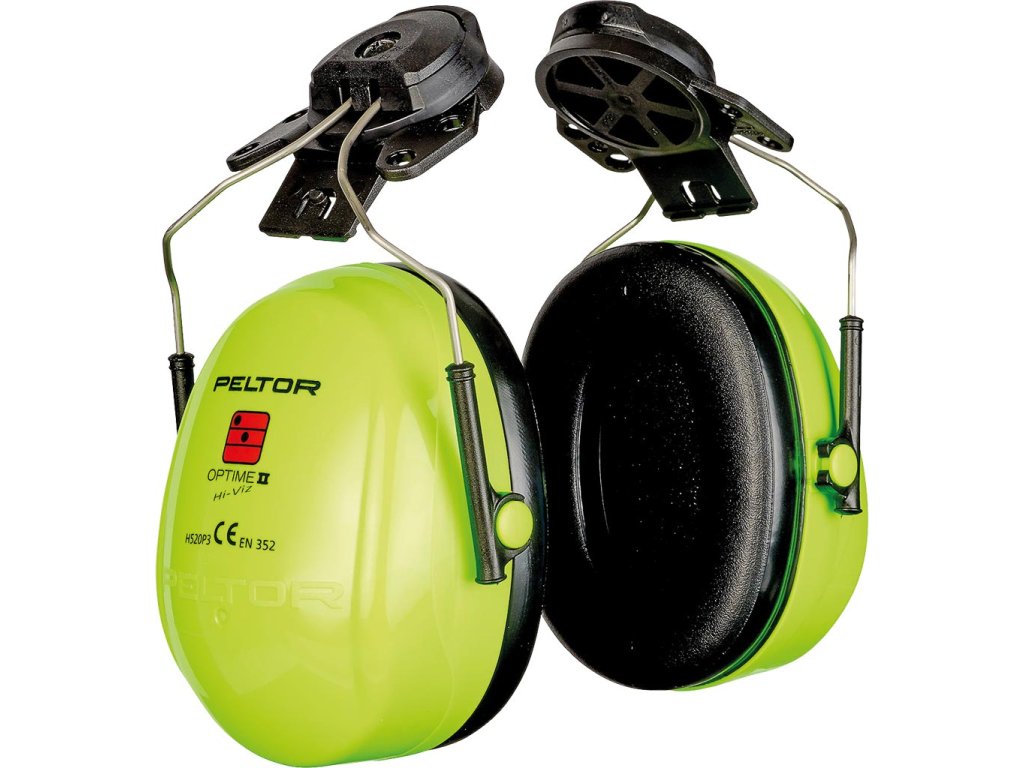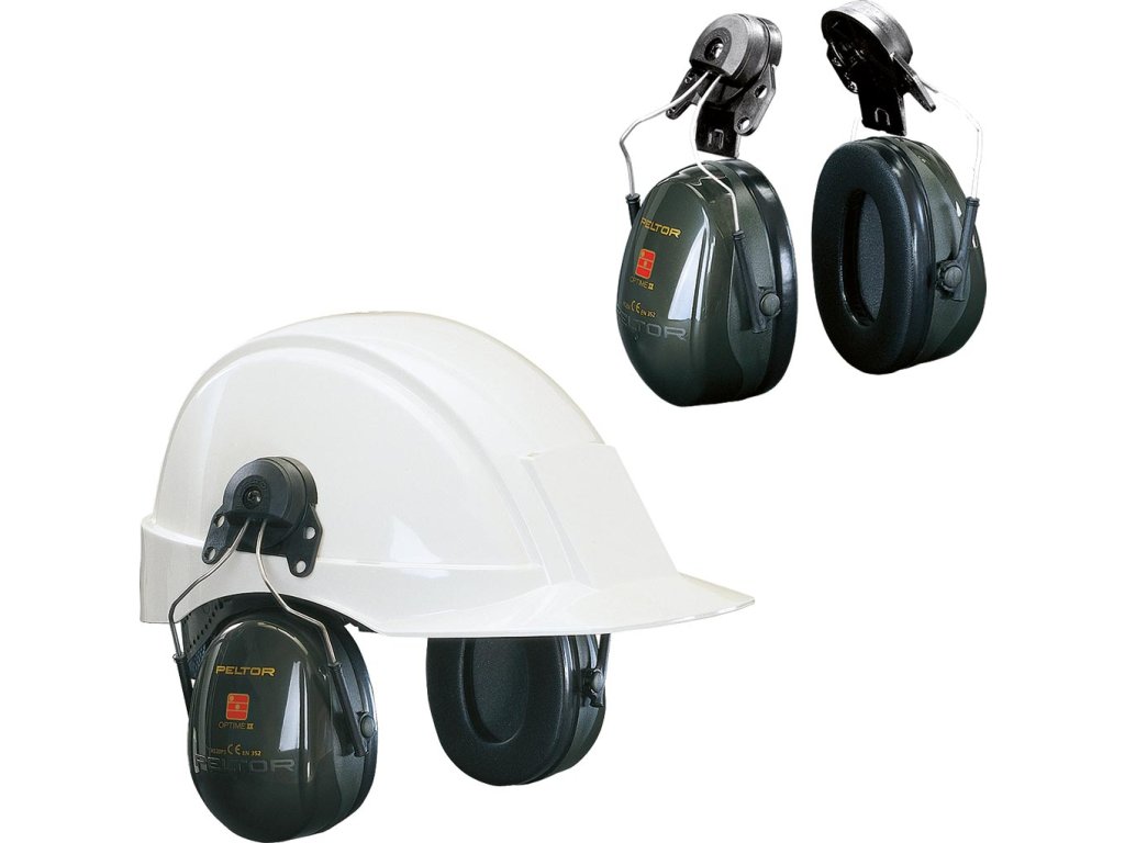 Chrániče sluchu Peltor™ OPTIME™ II upevnené na prilbu.- Zvukový útlm: SNR=30 dB