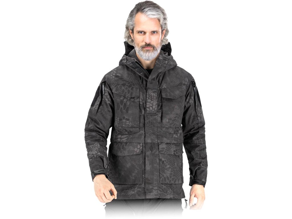 Pánska ochranná bunda Tactical Guard. - Rip-stop tkanina: 65% polyester, 35% bavlna - Hmotnosť: 210-220 g/m² - Rip-stop tkanina chráni pred roztrhnutím pri zachytení o vyčnievajúci predmet - Zapínanie na dvojcestný zips s dodatočným suchým zipsom - Kapucňa so šiltom, ktorý sa dá vyhrnúť a zapnúť gombíkom - Dve dvojité vrecká v spodnej časti a dve dvojité vrecká na hrudi - Vrecká na zips na oboch rukávoch - Elastický pás na vnútornej strane pre prispôsobenie a ochranu pred vetrom - Otvor na slúchadlá vo vnútri bundy - Rukávy a spodná časť bundy so zapínaním na suchý zips - Dodatočné zipsy na bokoch pre vetranie, otvorené pomocou magnetických uzáverov - Navrhnuté pre vojenských nadšencov, cestovateľov a fanúšikov paintballu - ideálne pre lesníkov a rybárovDodatočné parametre