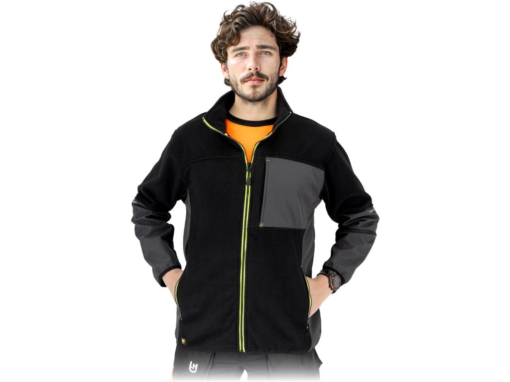 Pánska ochranná mikina. - Hlavný materiál: 100% polyester fleece, 280 g/m² - Šedé vložky z dvojvrstvovej softshellovej tkaniny: 96 % polyester, 4 % elastan, 100 % polyesterový fleece, 300 g/m² - SOFTSHELL materiál - chráni pred vetrom a zároveň umožňuje pokožke dýchať - Zapínanie na zips - Stojací golier - Dve spodné vrecká a jedno náprsné vrecko na zips - Elastické manžety a spodný lem - Reflexné prvky - Fit: REGULARDodatočné parametre