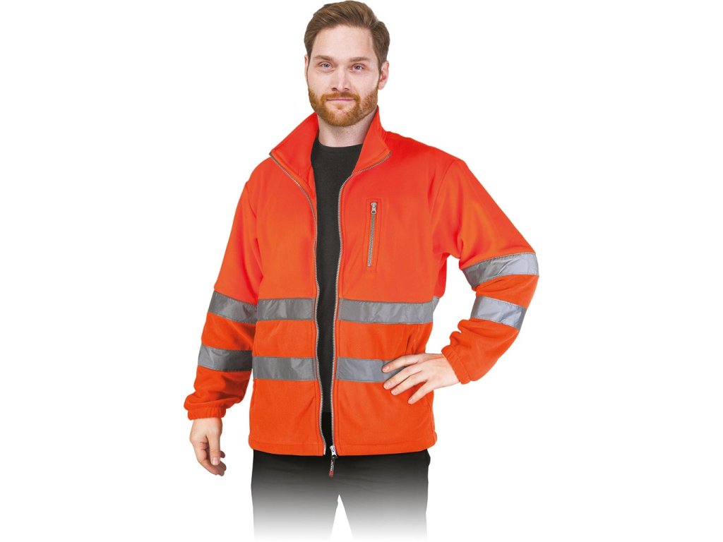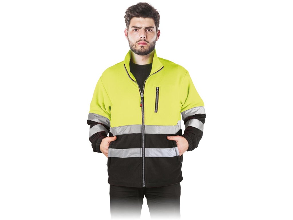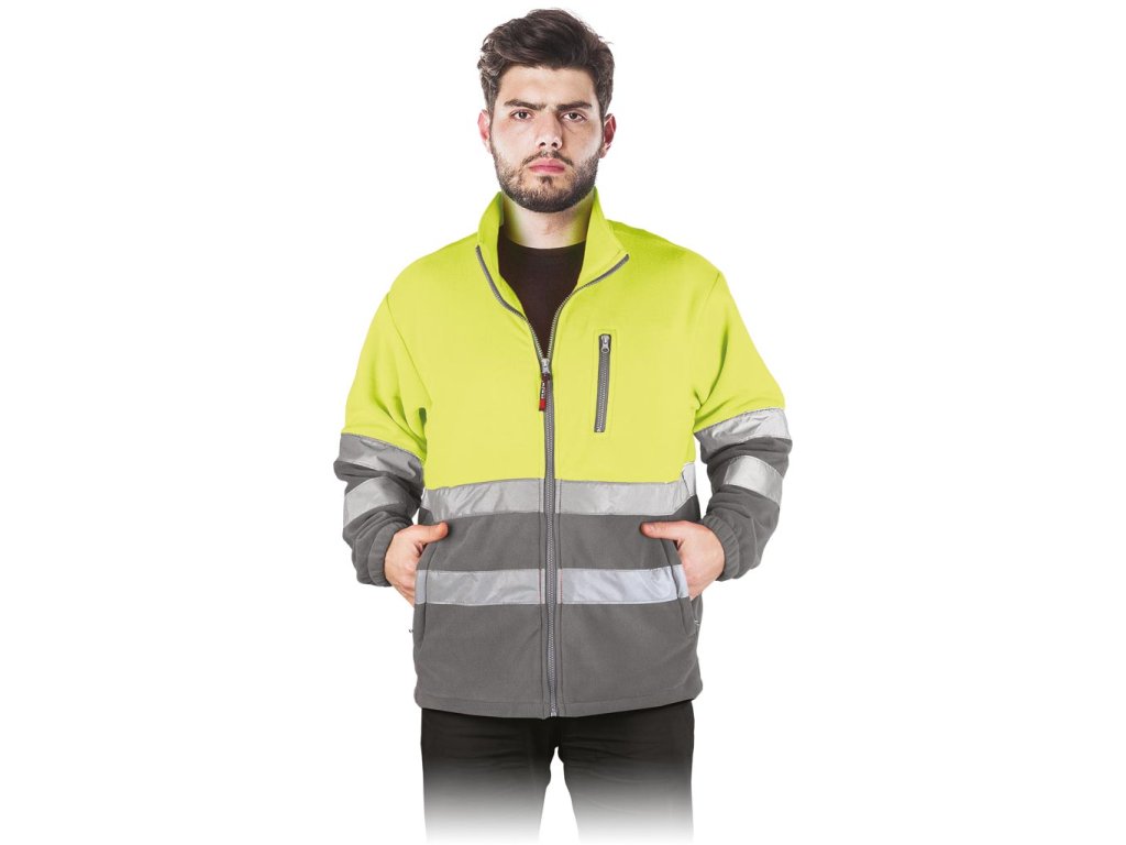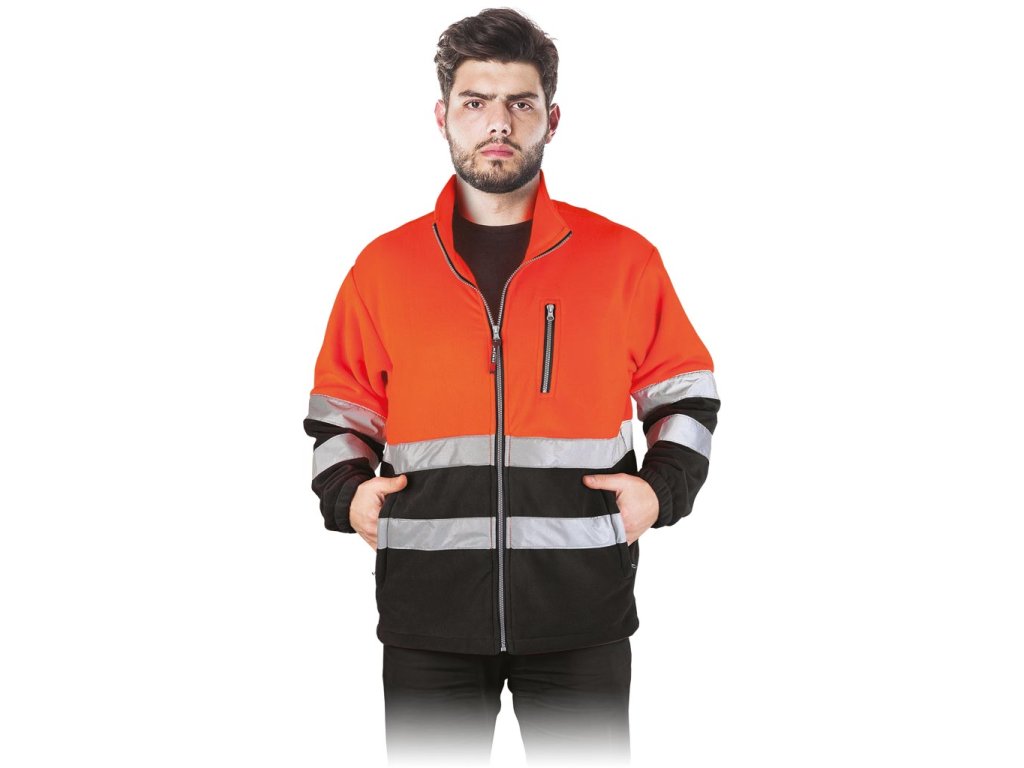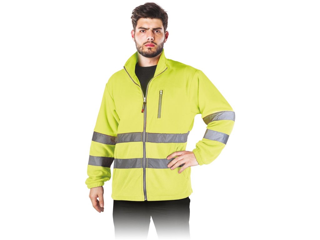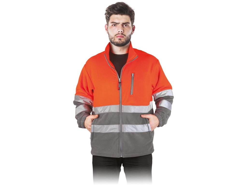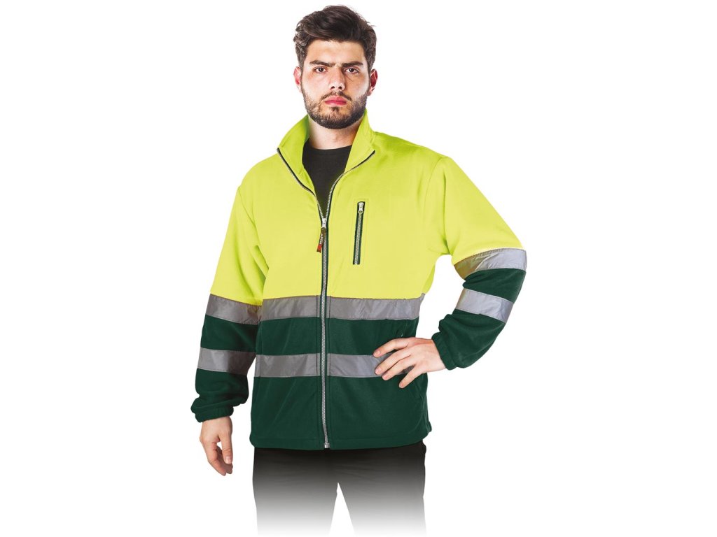 Pánska ochranná mikina. - 100% polyesterová fleecová tkanina - hmotnosť 280 g/m² - Zapínanie na zips - Stojací golier - Dve spodné vrecká a jedno náprsné vrecko so zapínaním na zips - Elastické manžety na rukávoch - Fluorescenčná tkanina a reflexné pruhy pre zvýšenú viditeľnosť - Fit: REGULARDodatočné parametre