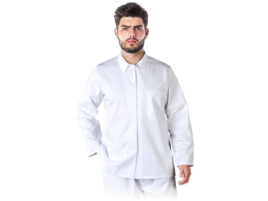 Pánska ochranná mikina s dlhým rukávom. - Materiál: 65% polyester, 35% bavlna - Gramáž: 250 g/m² - Zapínanie na cvok - Golier s golierom - Vnútorné vrecko na ľavej strane - Malé bočné rozparky - Vhodné pre HACCP (potravinársky priemysel) - Vhodné na priemyselné pranie (maximálna teplota 95°C)Dodatočné parametre